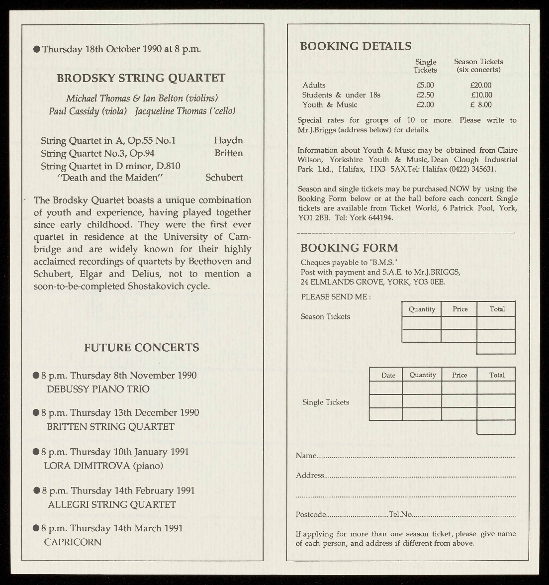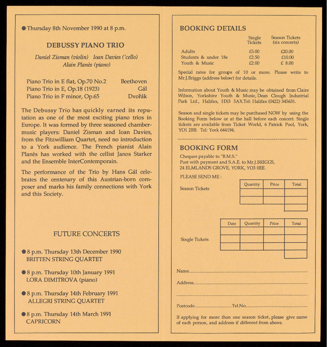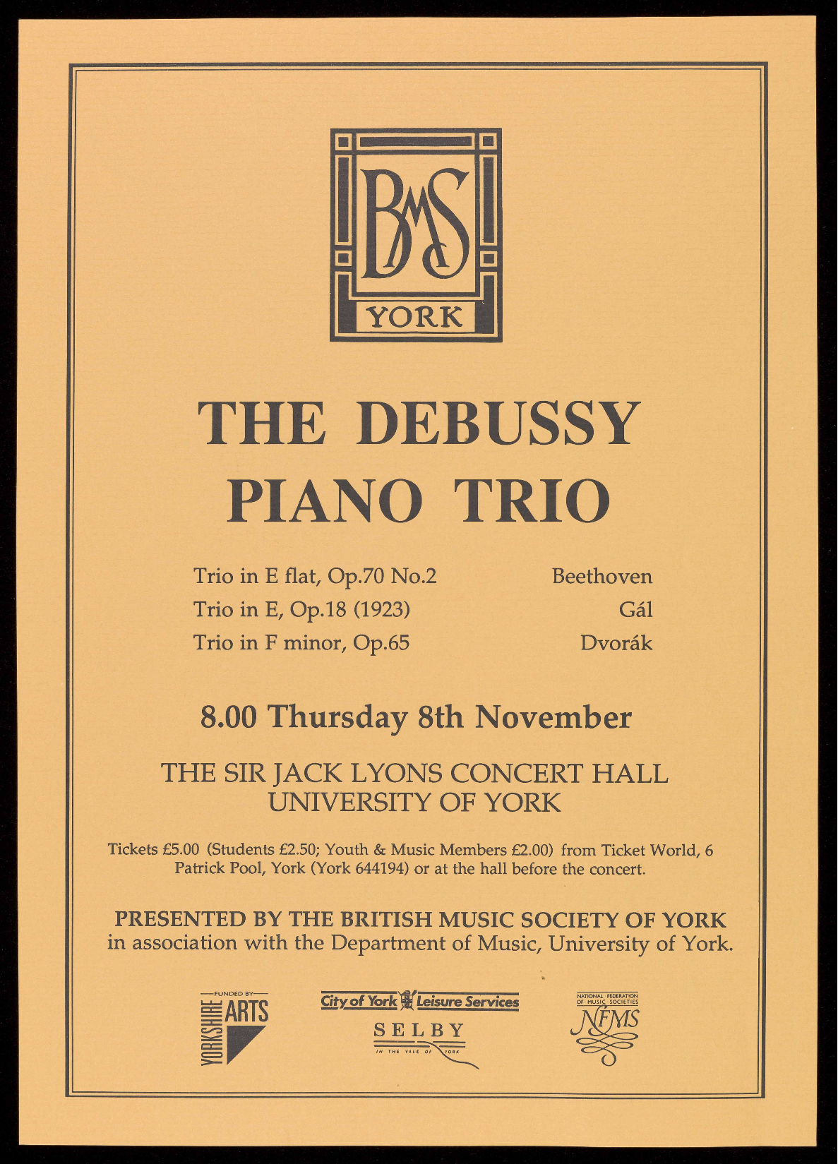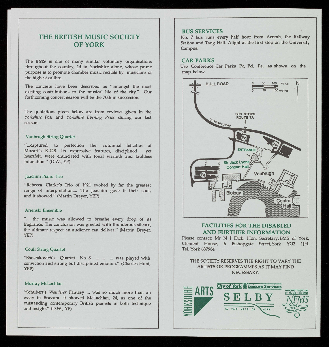 Pool, York (York 644194) or at the hall before the concert.
