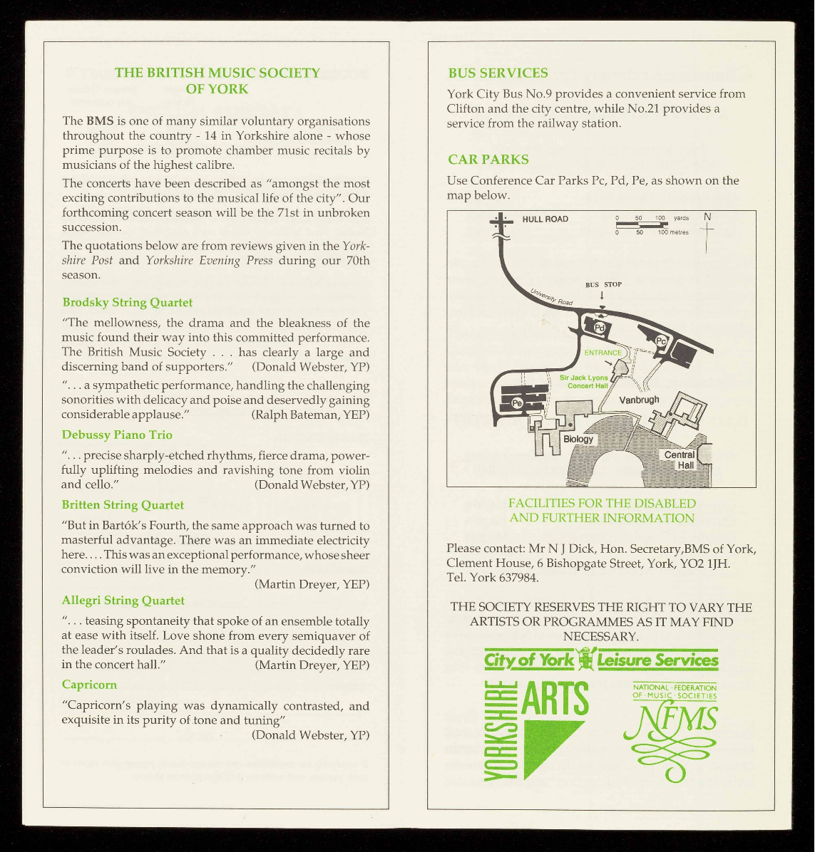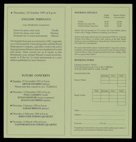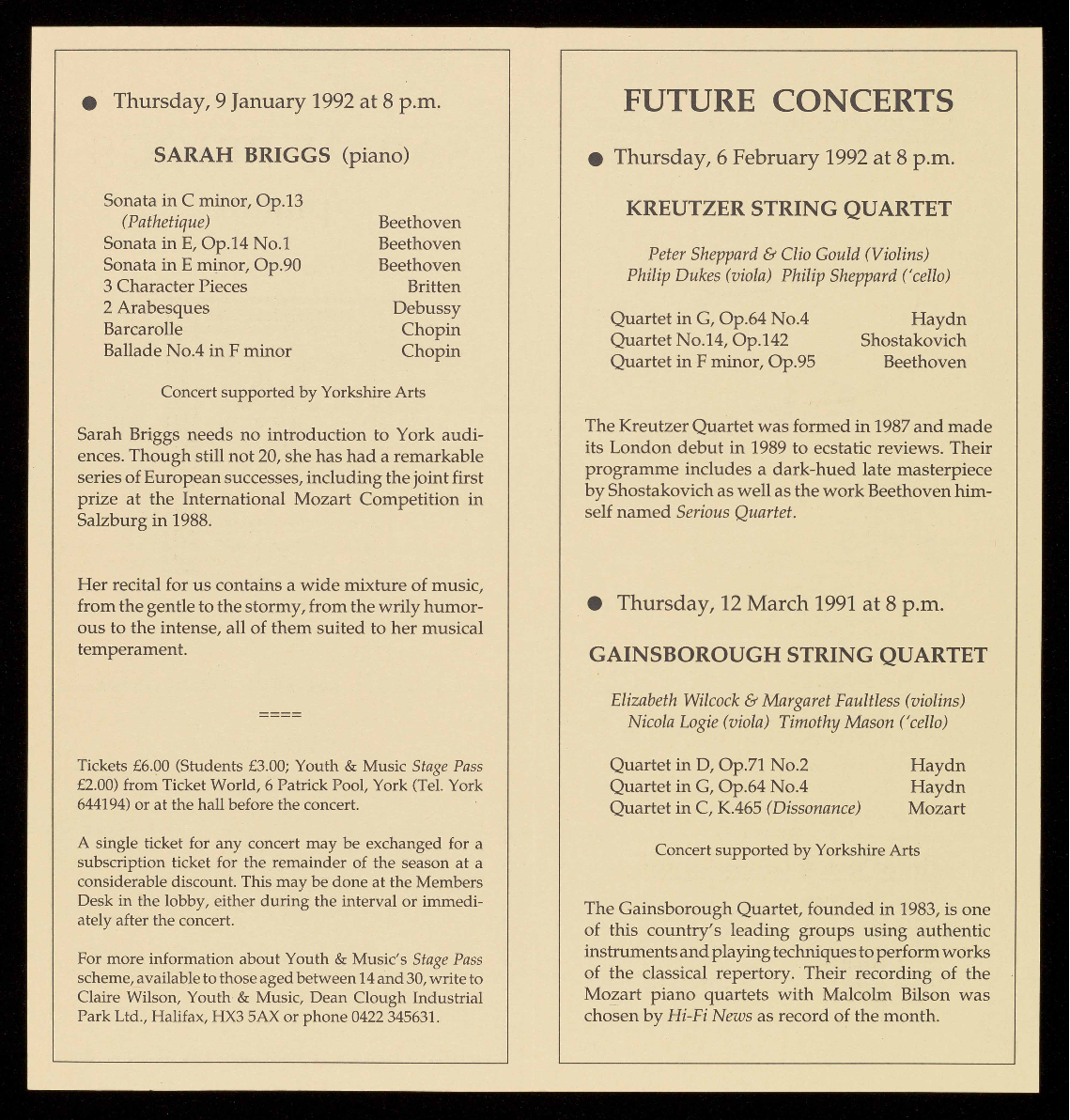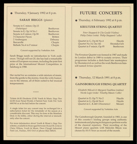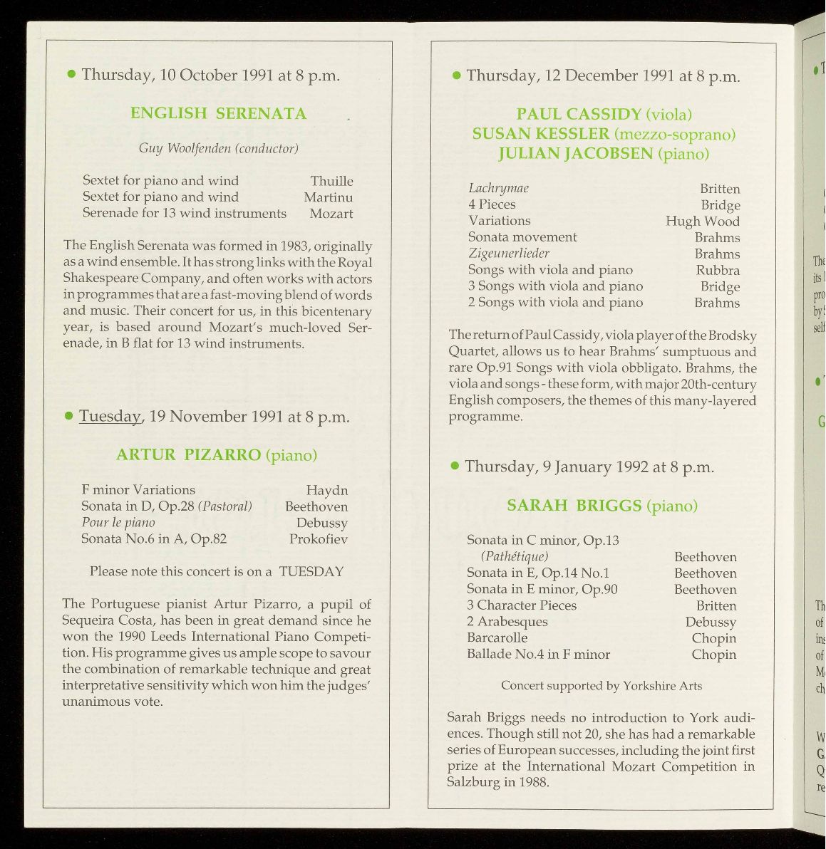 For a free brochure giving full details of these concerts and