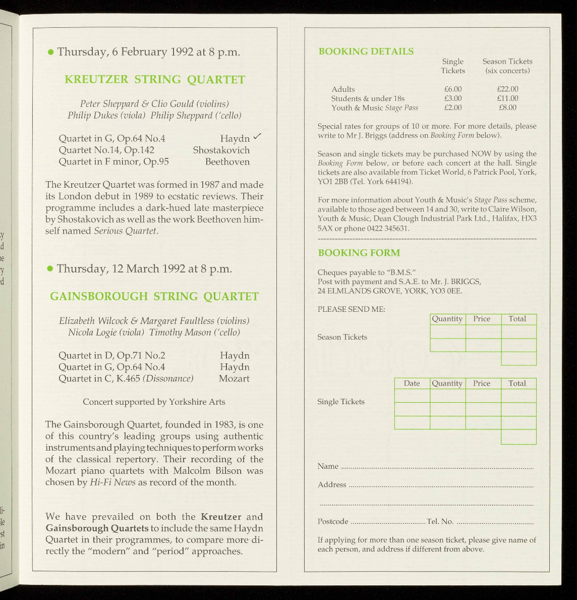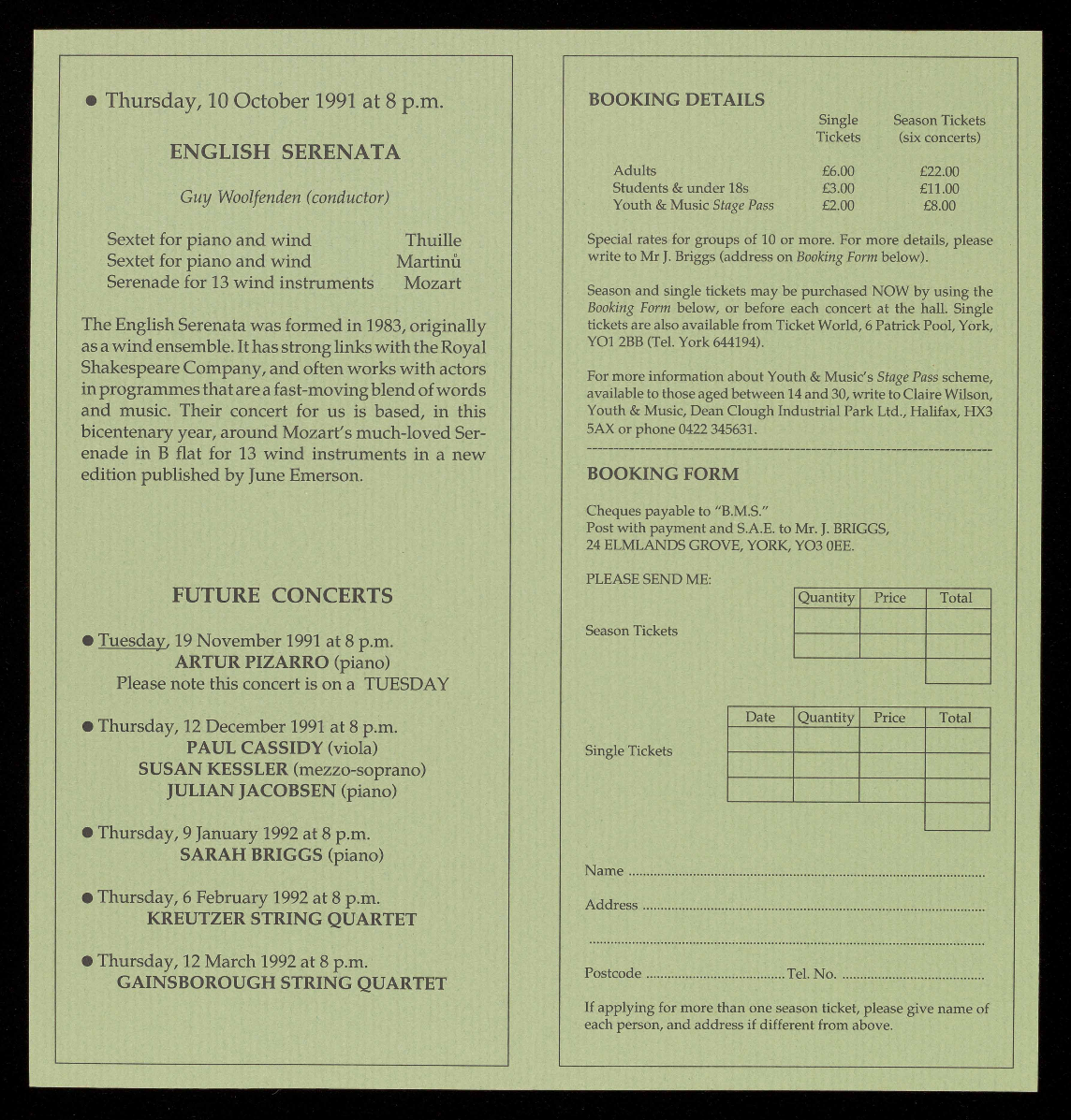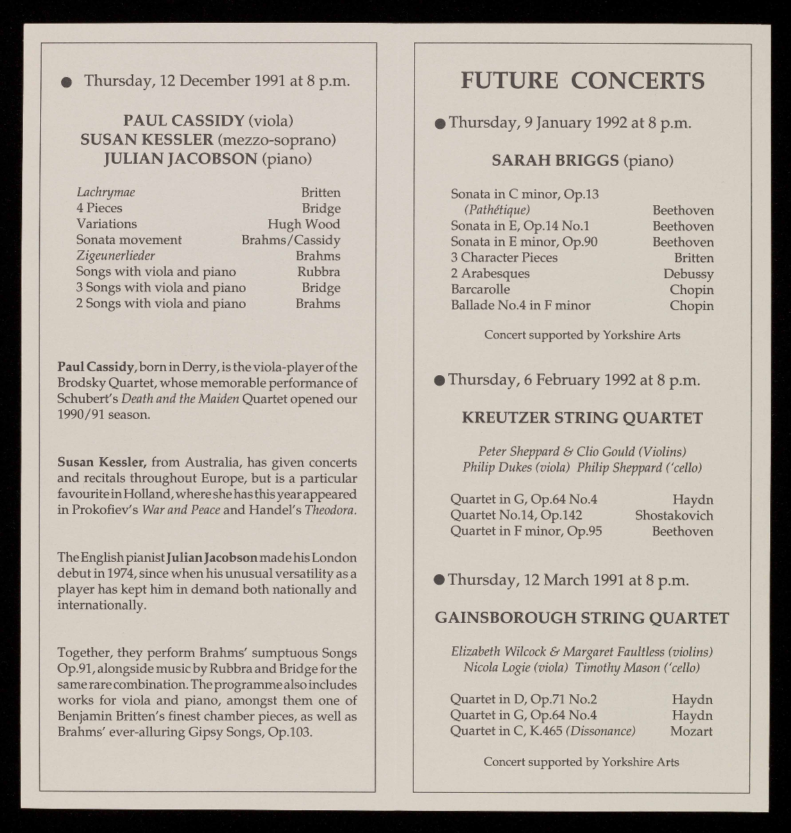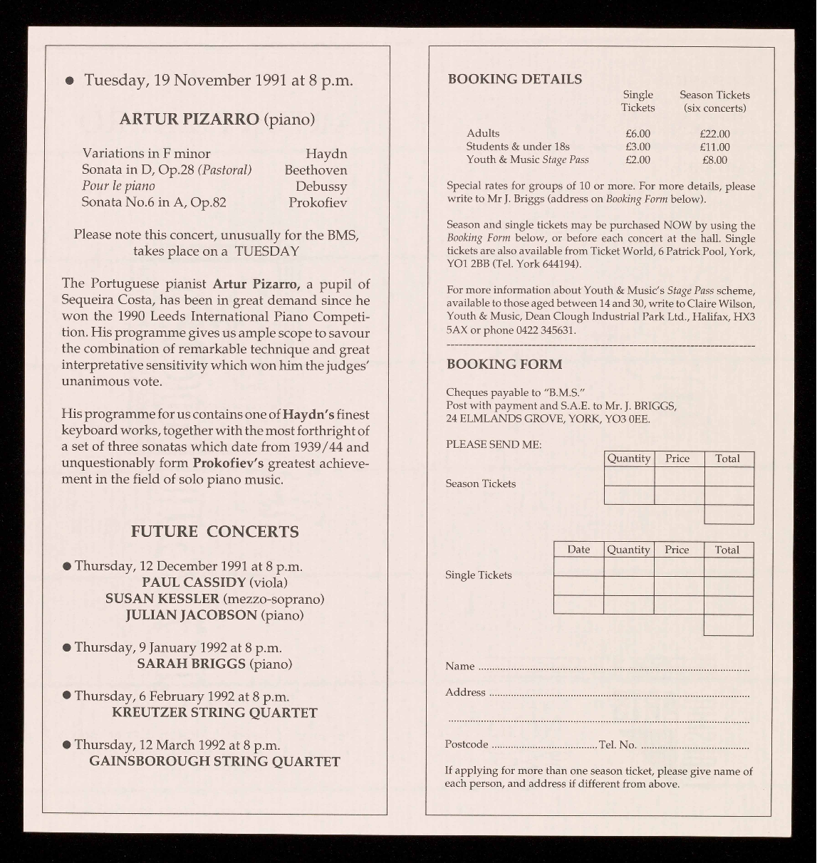 For a free brochure giving full details of these concerts and