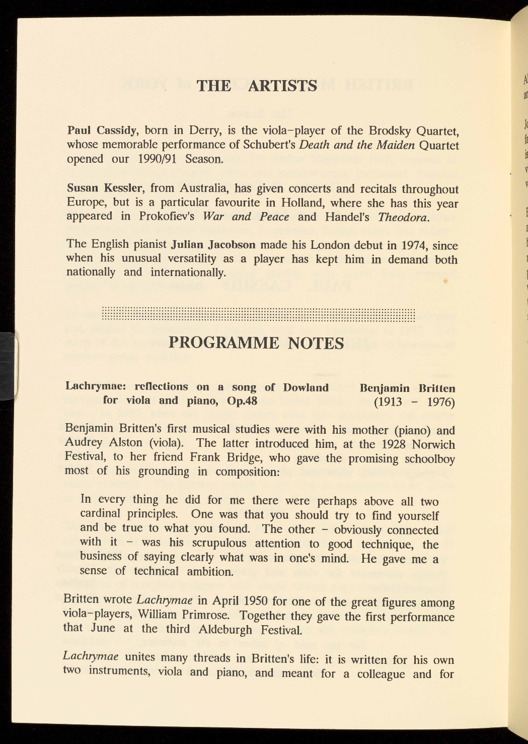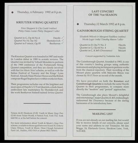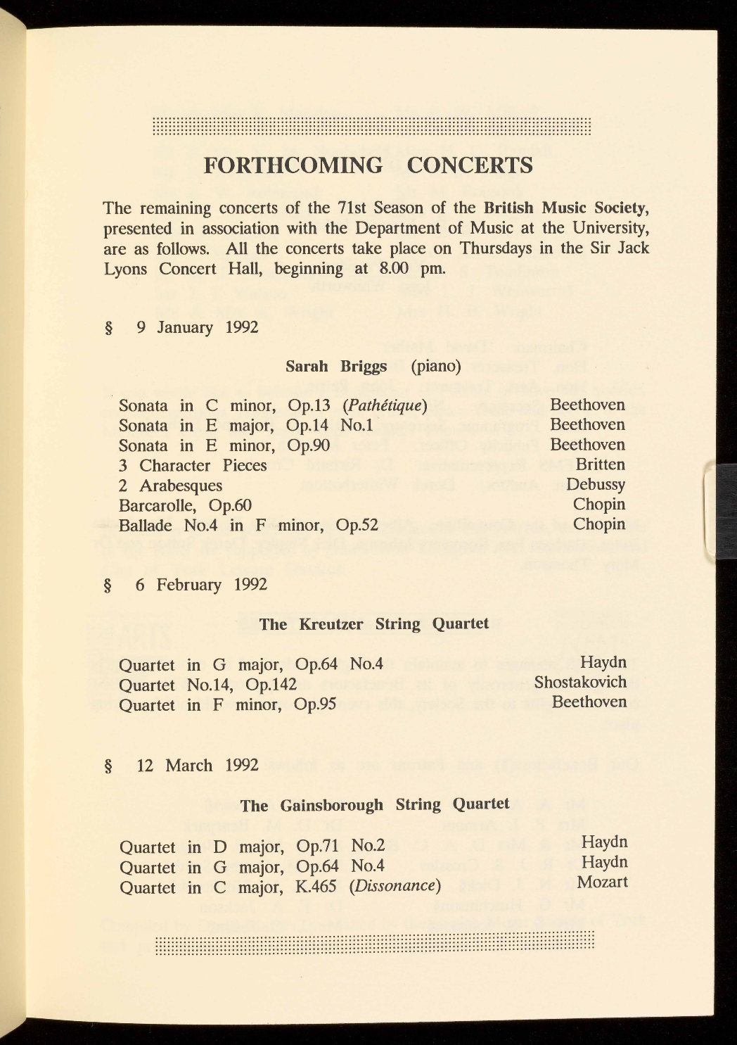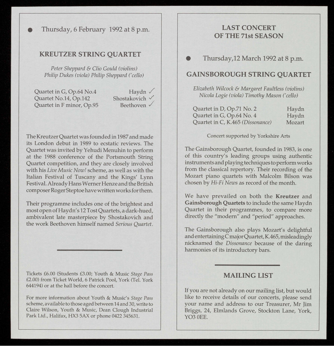 For a free brochure giving full details of these concerts and