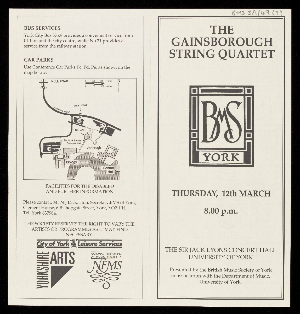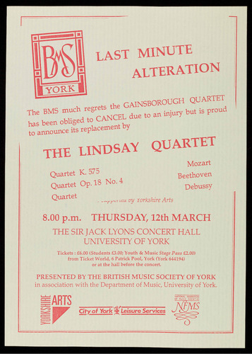 The BMS much regrets the GAINSBOROUGH QUARTET