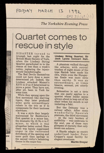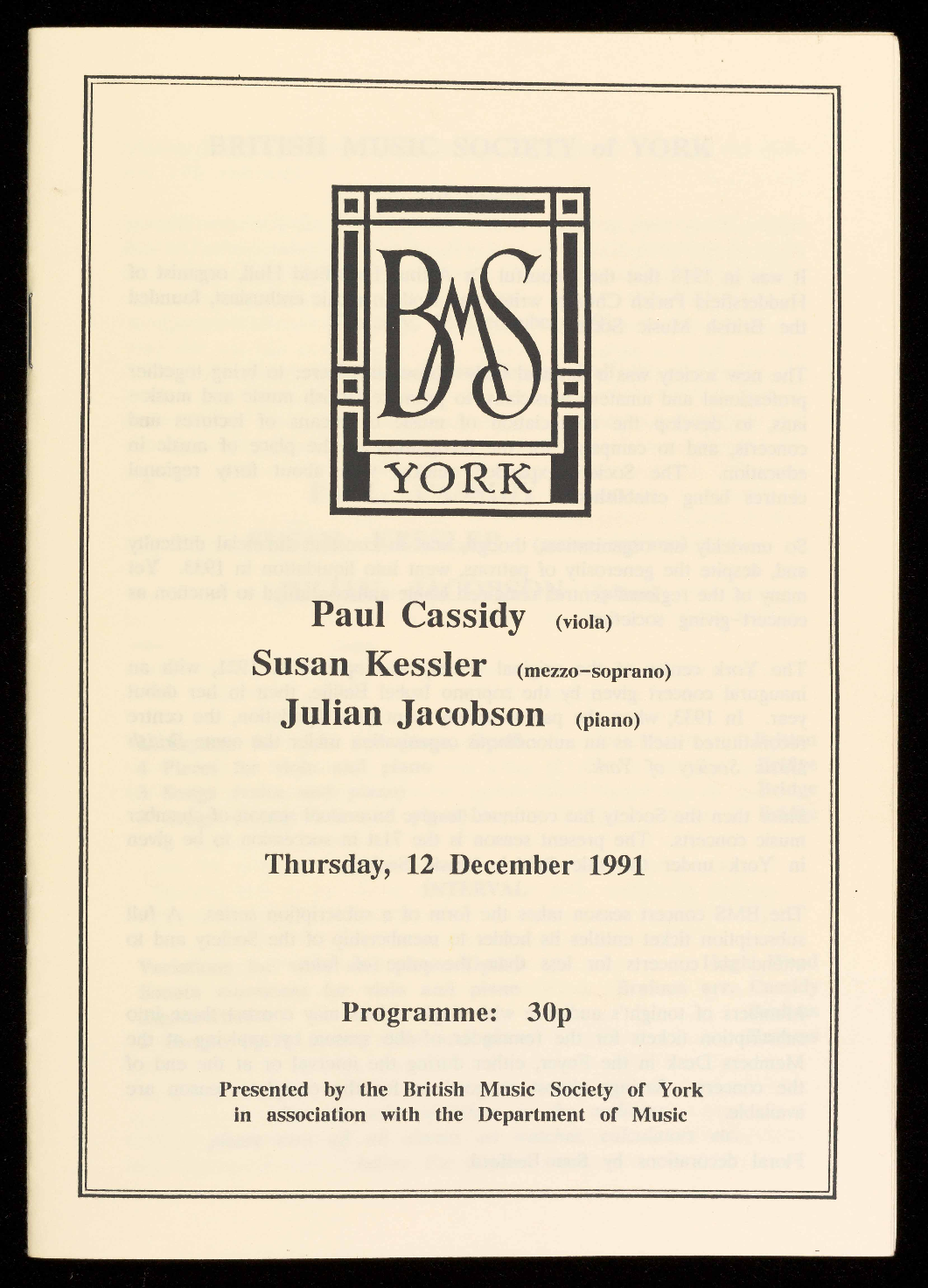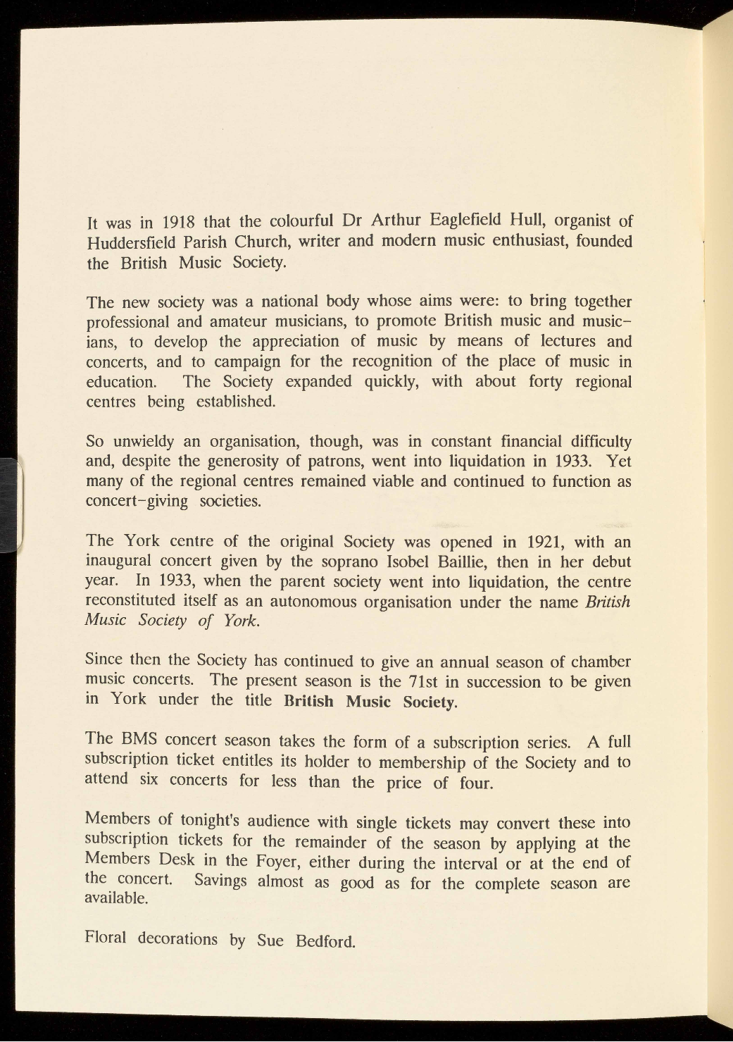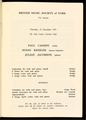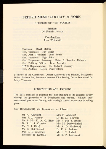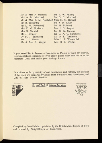 Presented by the British Music Society of York