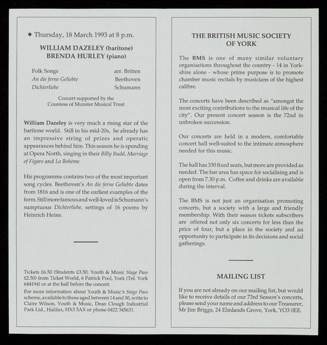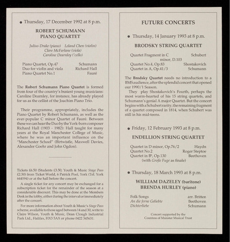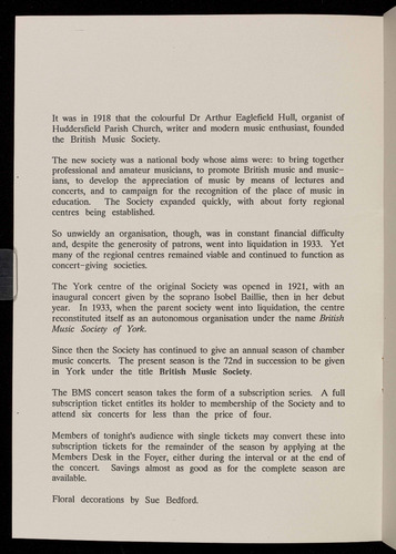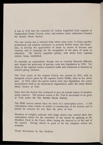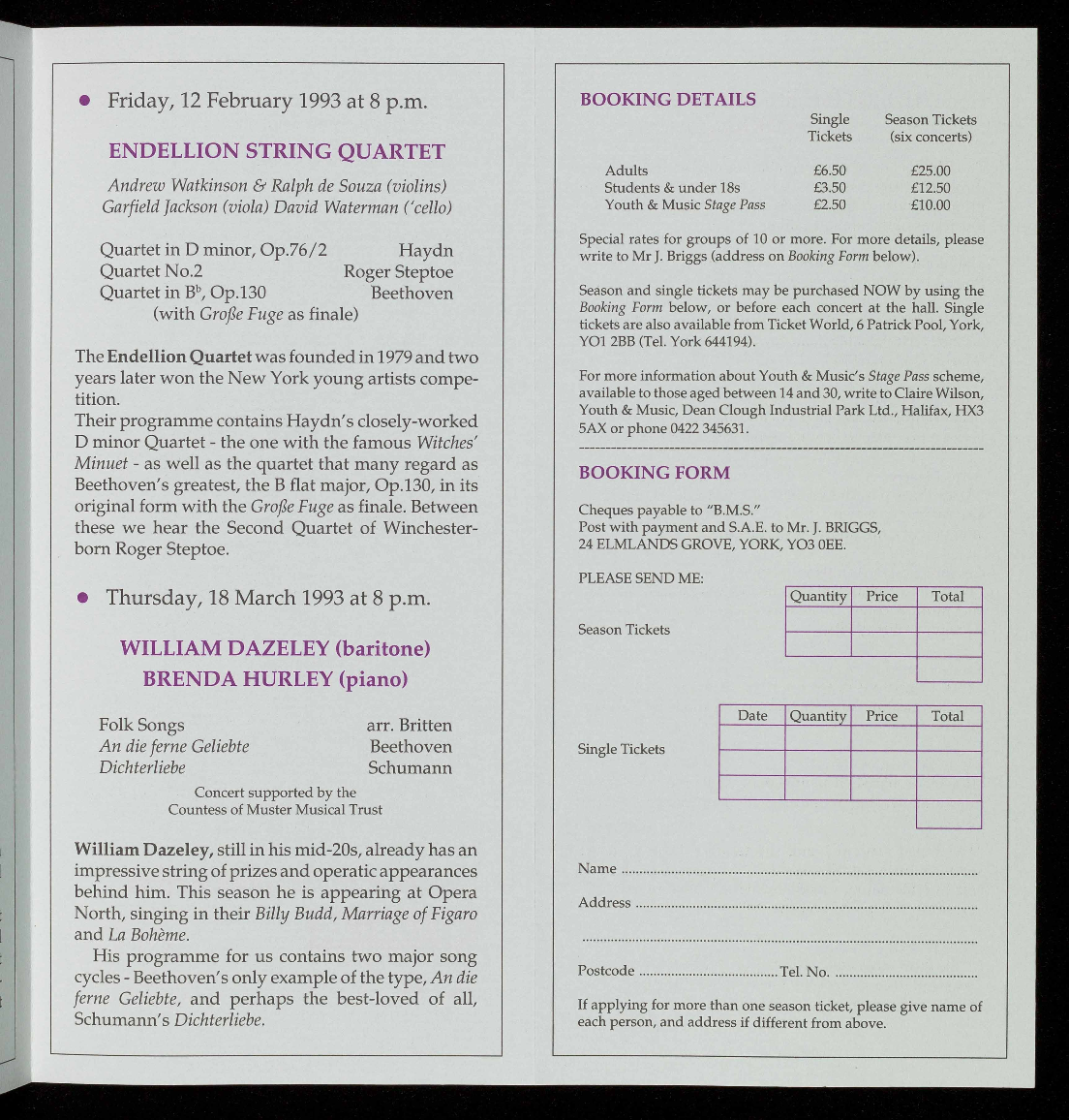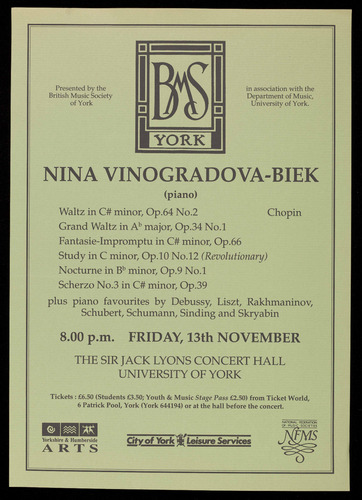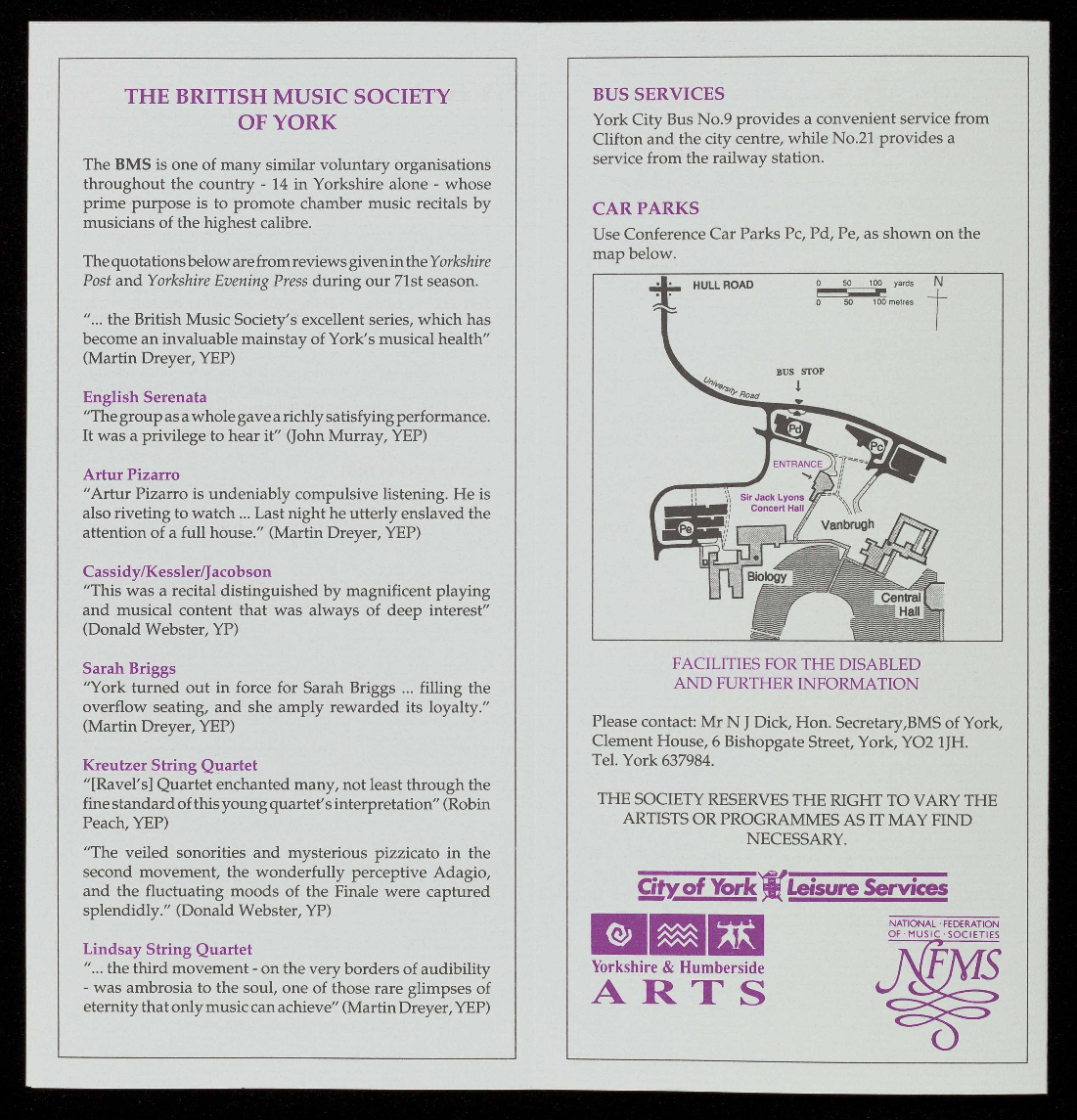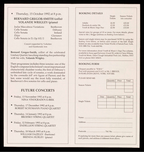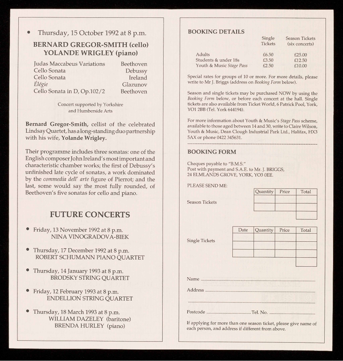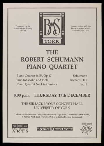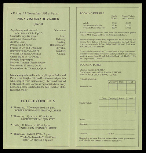 6 Patrick Pool, York (York 644194) or at the hall before the concert.
