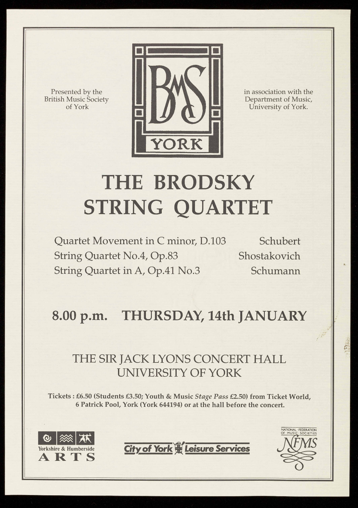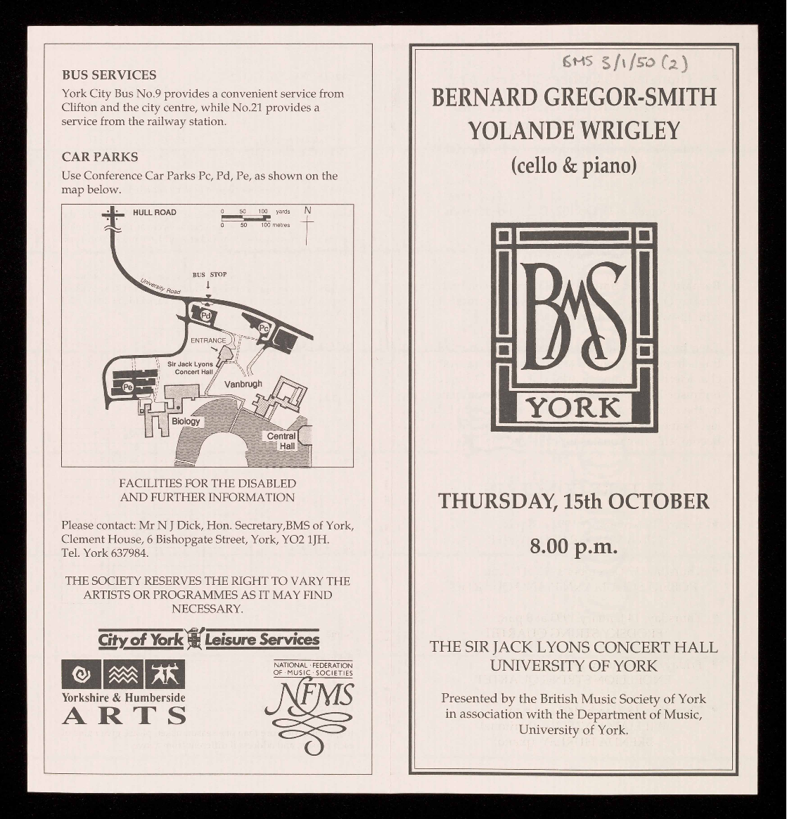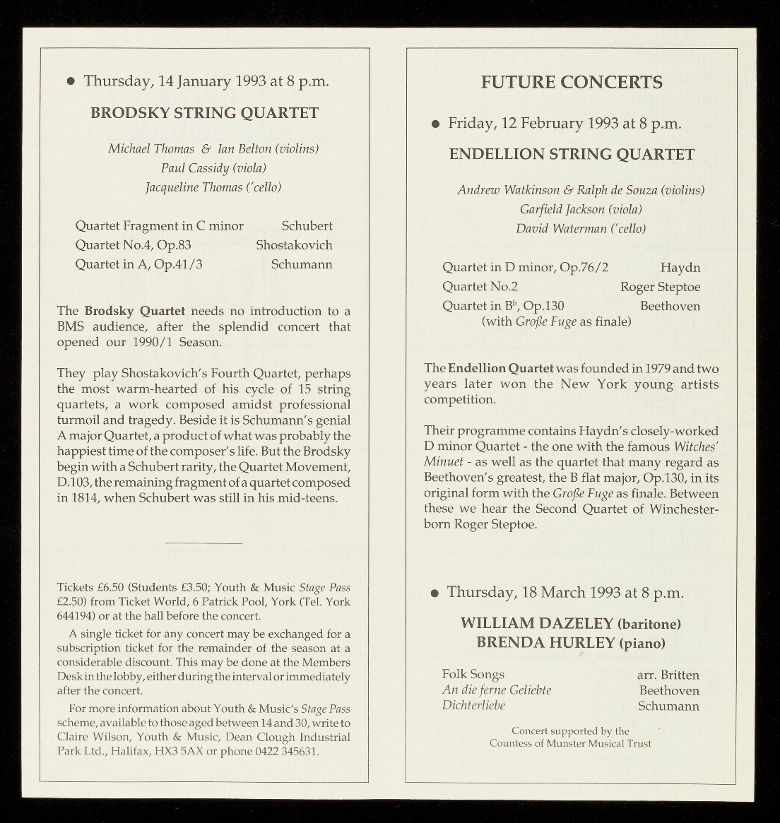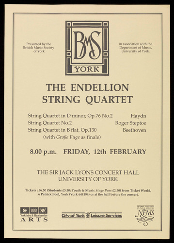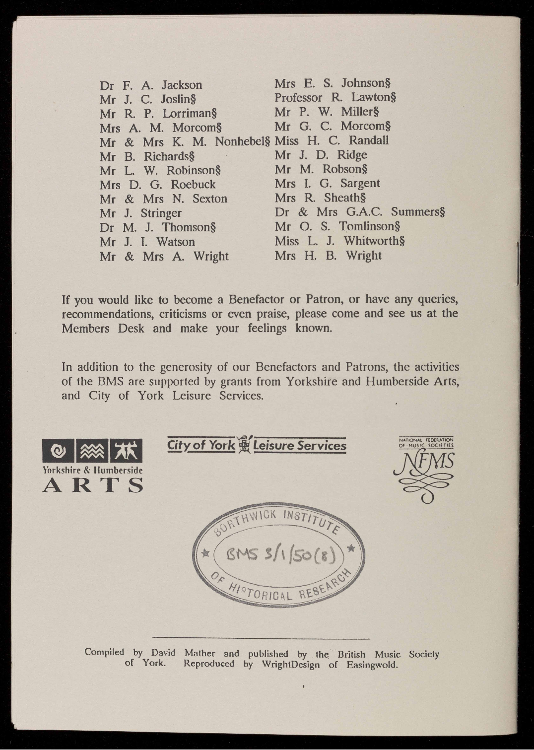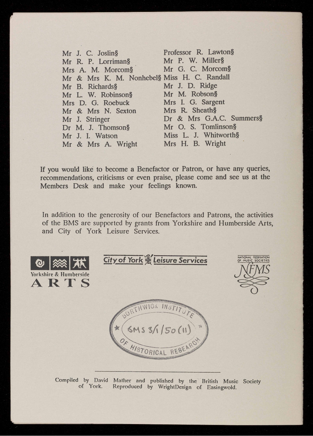 6 Patrick Pool, York (York 644194) or at the hall before the concert.