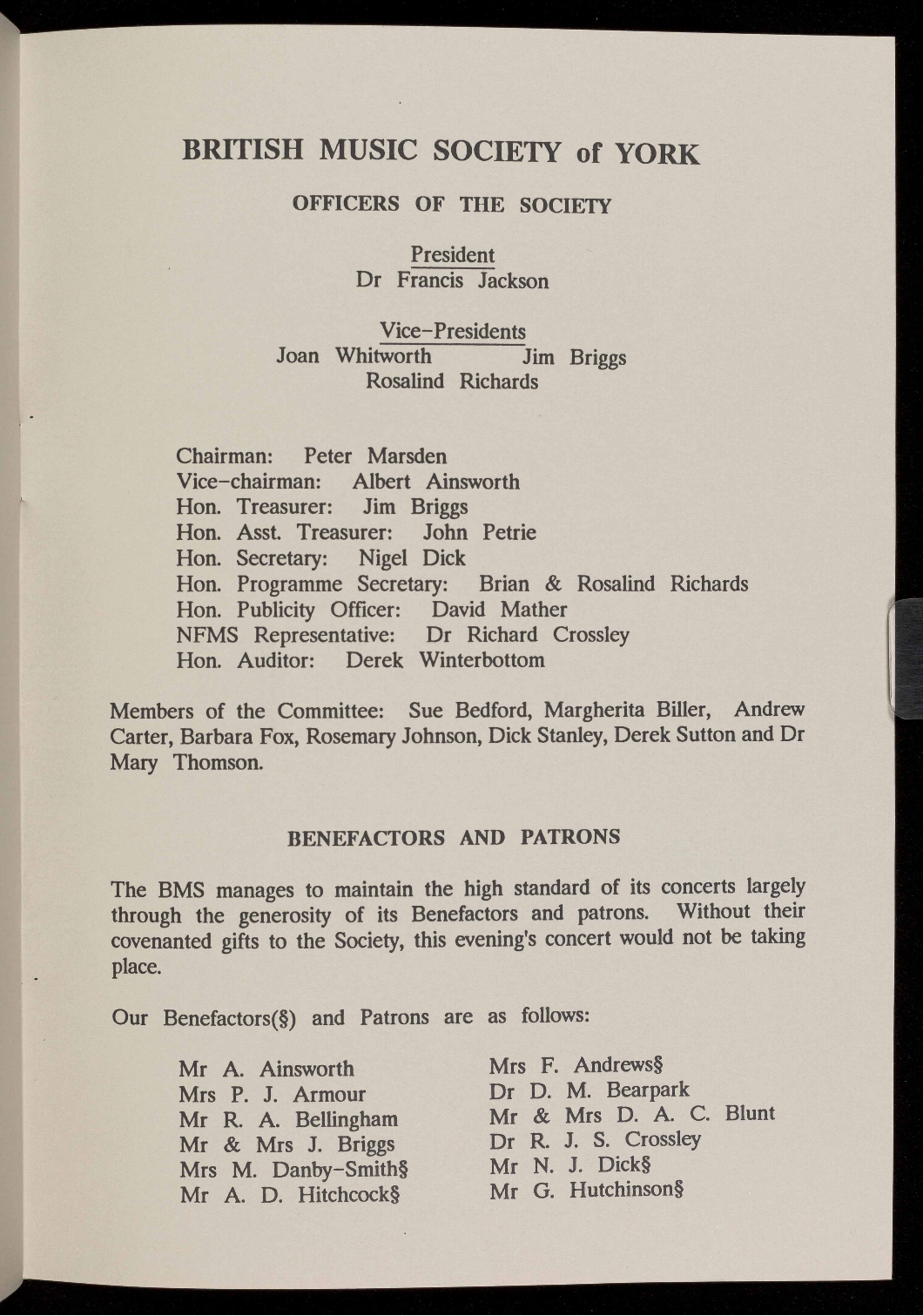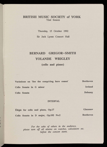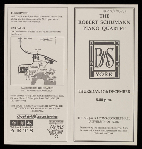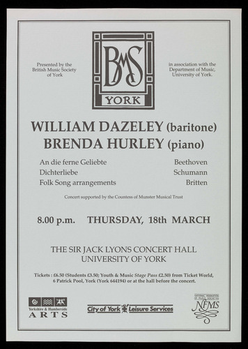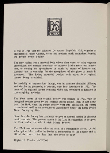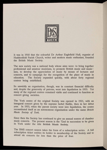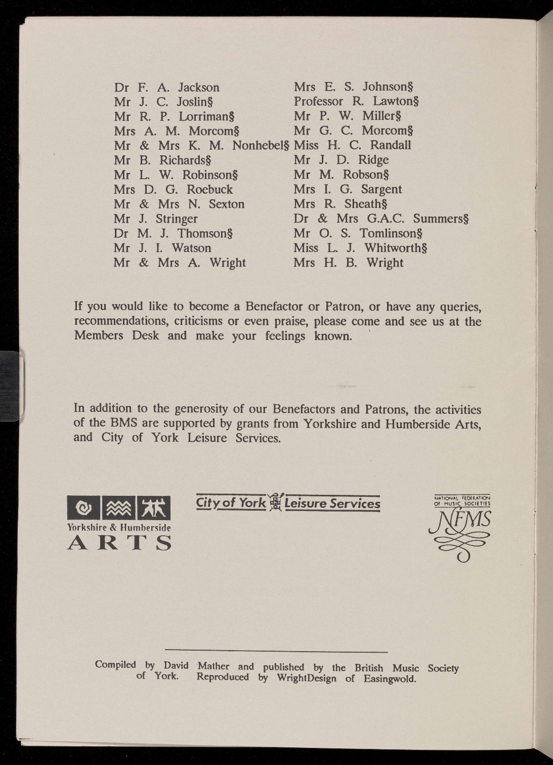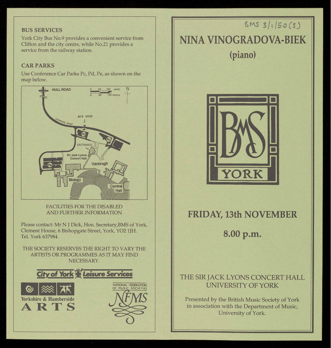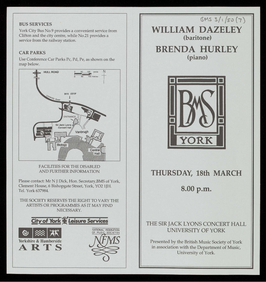6 Patrick Pool, York (York 644194) or at the hall before the concert.