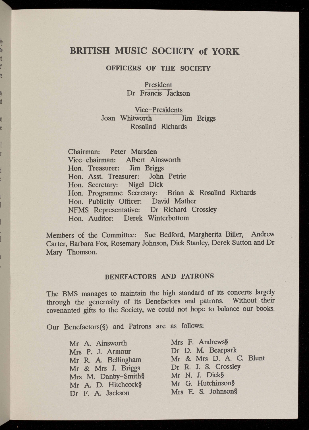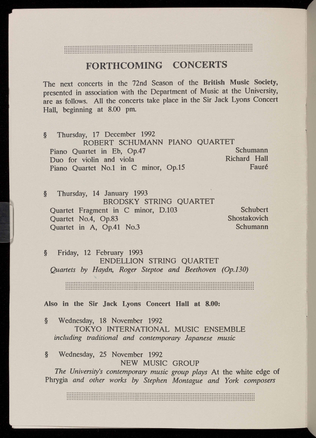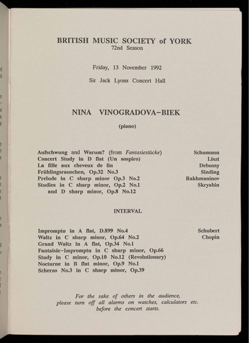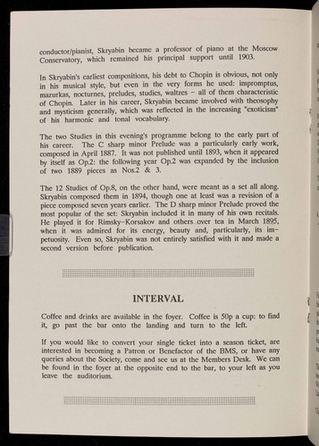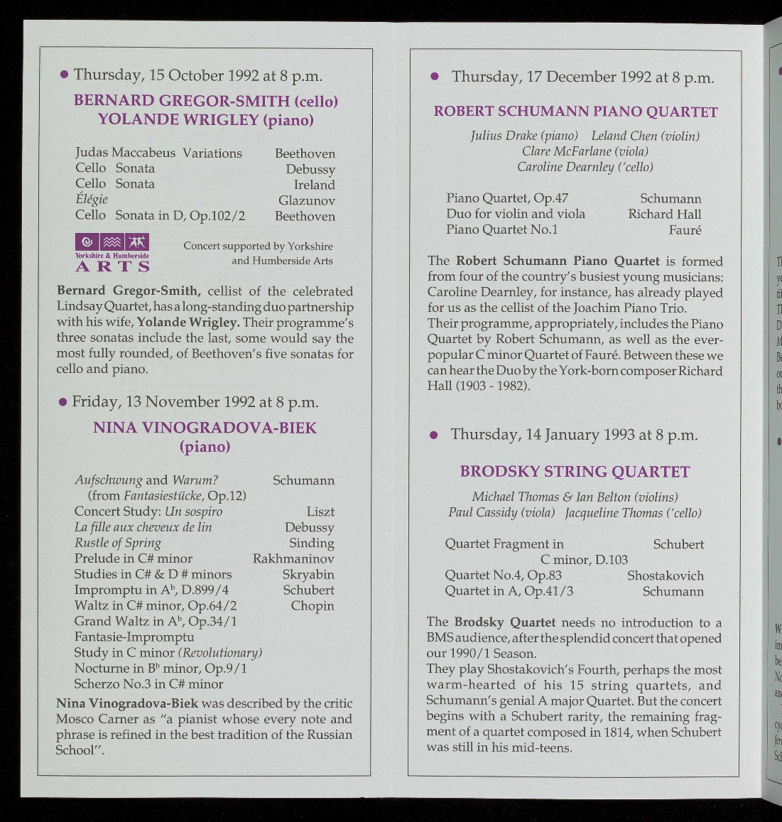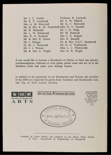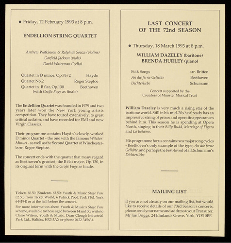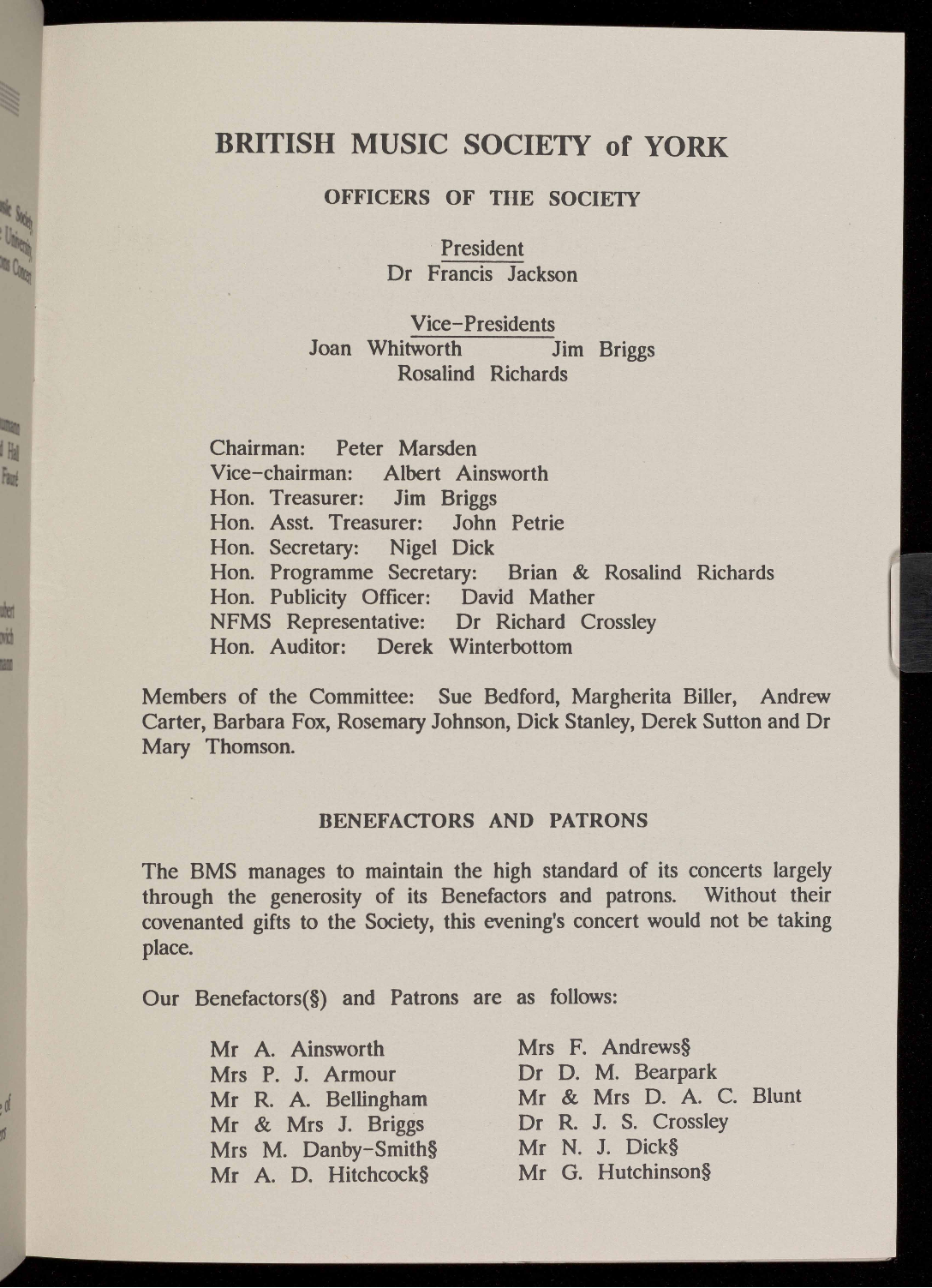 6 Patrick Pool, York (York 644194) or at the hall before the concert.