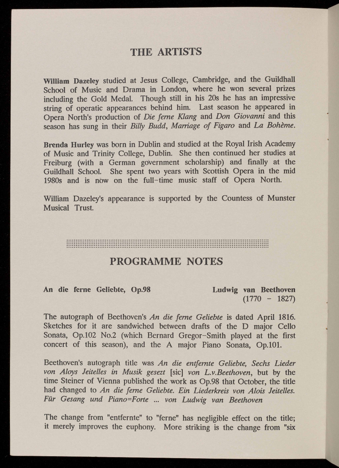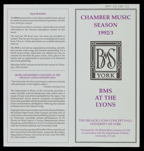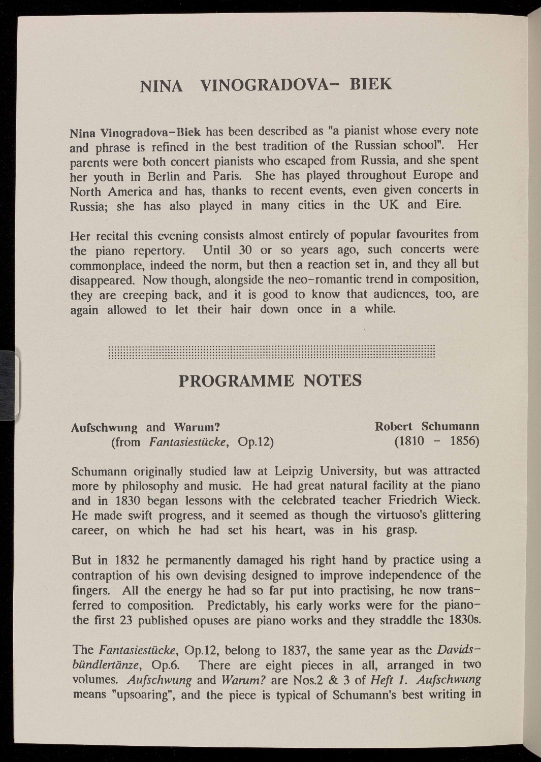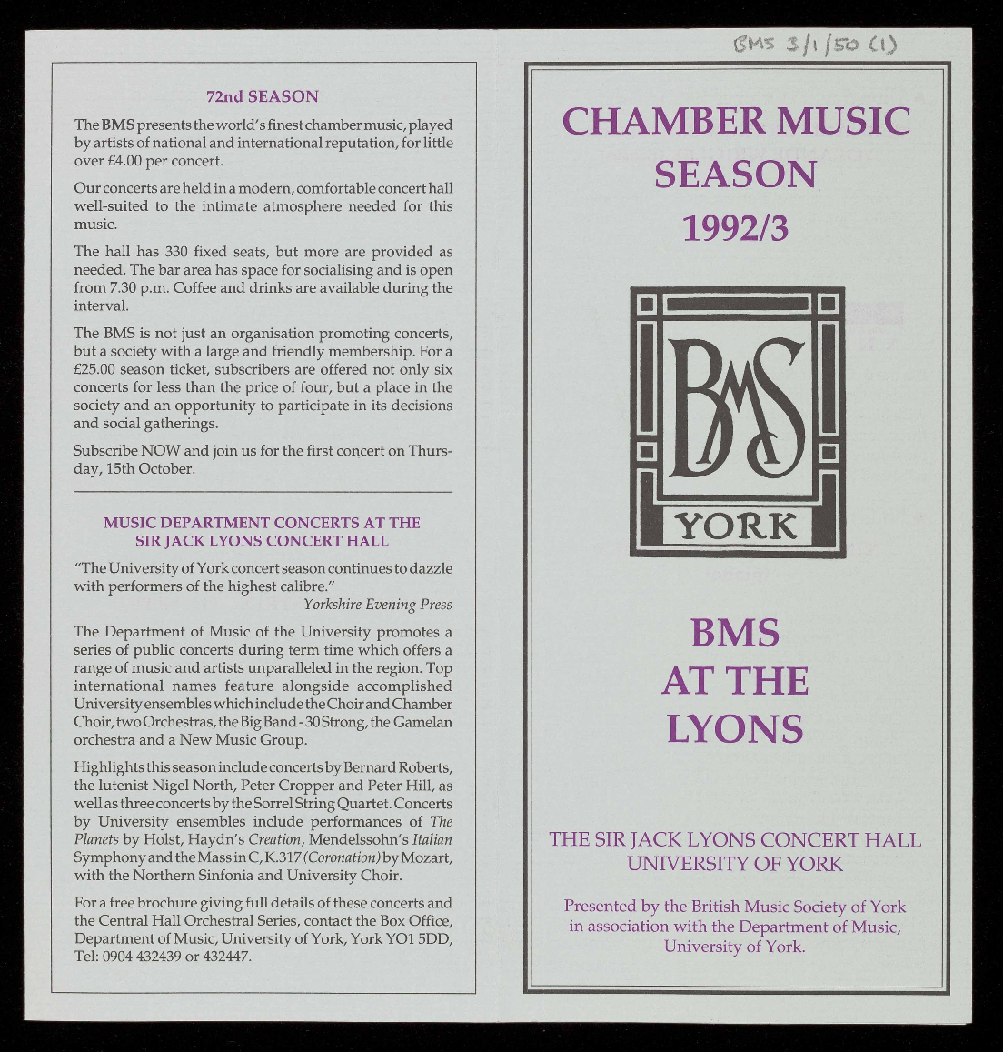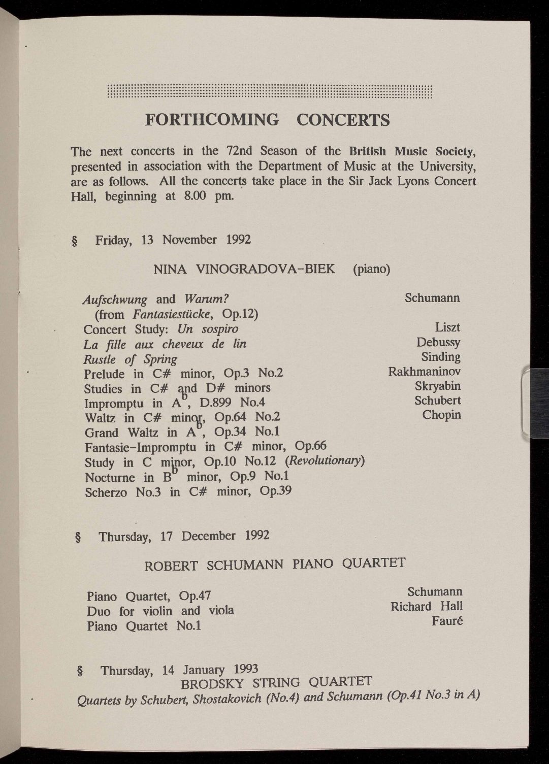 6 Patrick Pool, York (York 644194) or at the hall before the concert.