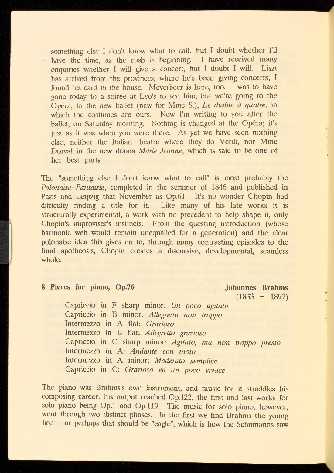 Capriccio in B minor, a teasingly graceful Intermezzo in A flat and a more