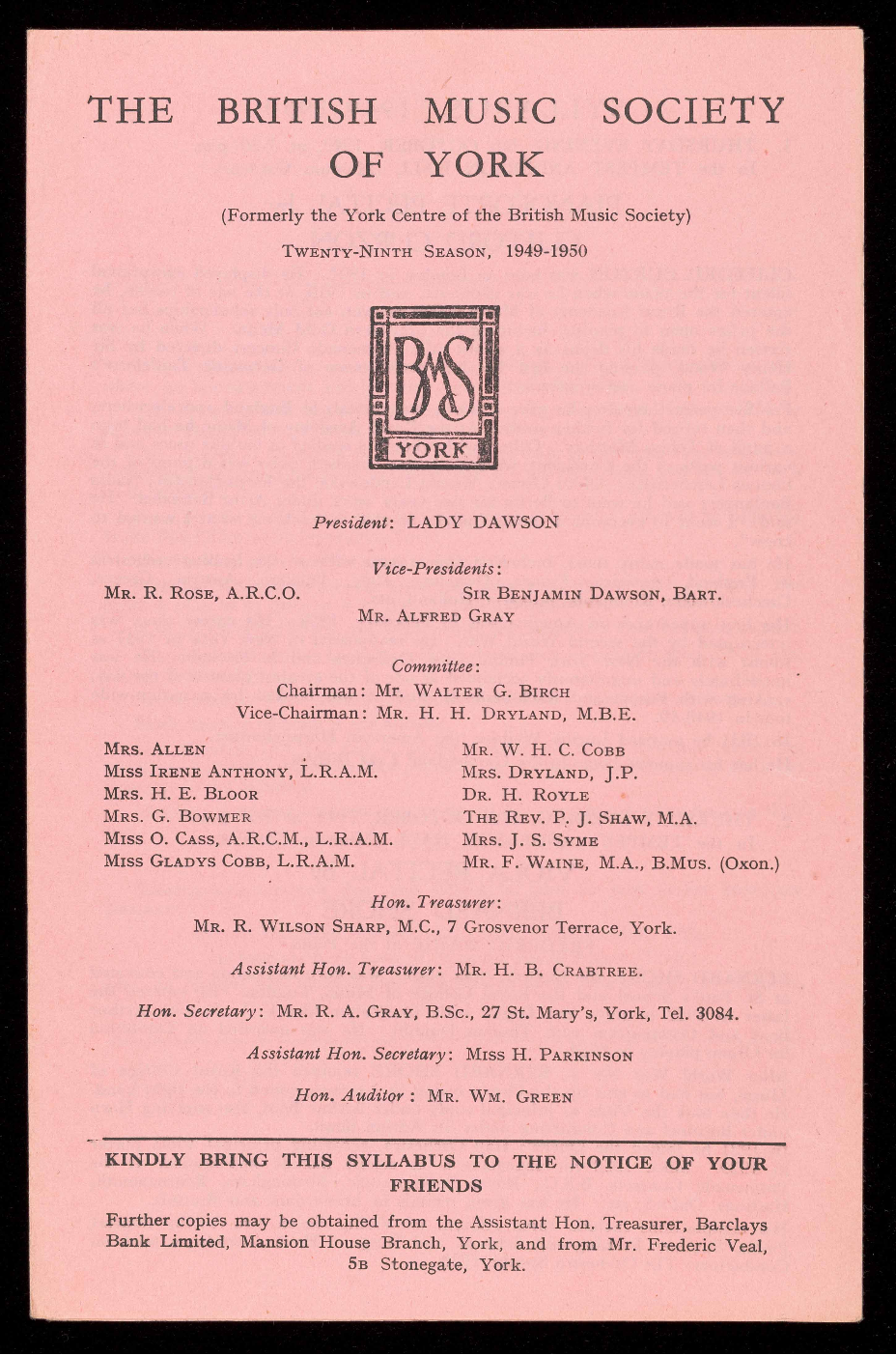 Hon. Secretary: MR. R. A. GRAY, B.Sc., 27 St. Mary's, York, Tel. 3084.