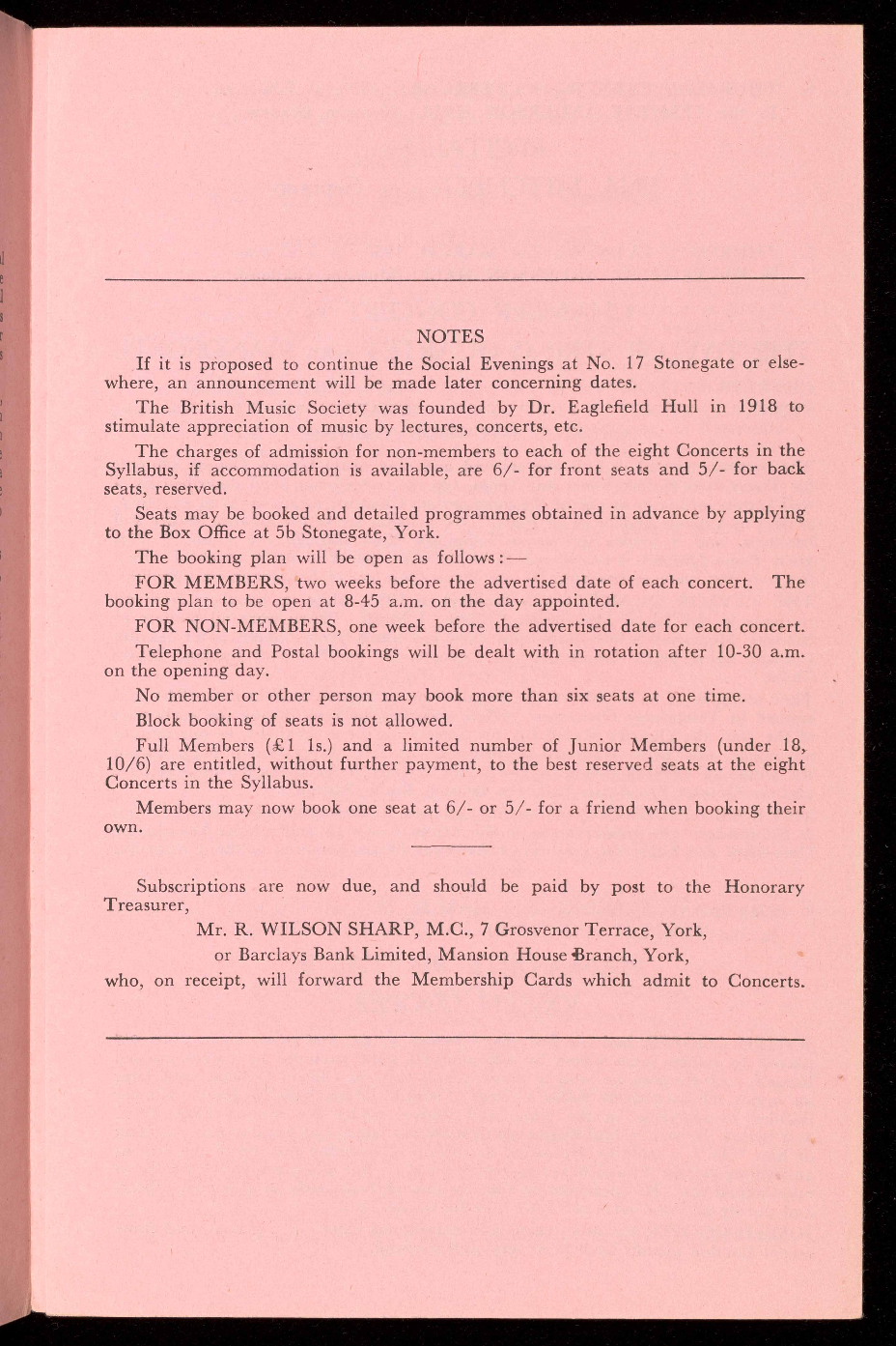 Syllabus, if accommodation is available, are 6/- for front seats and 5/- for back