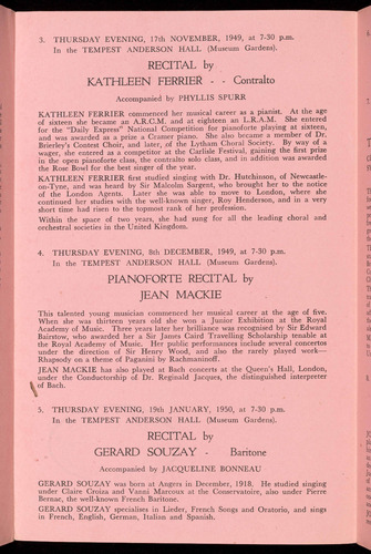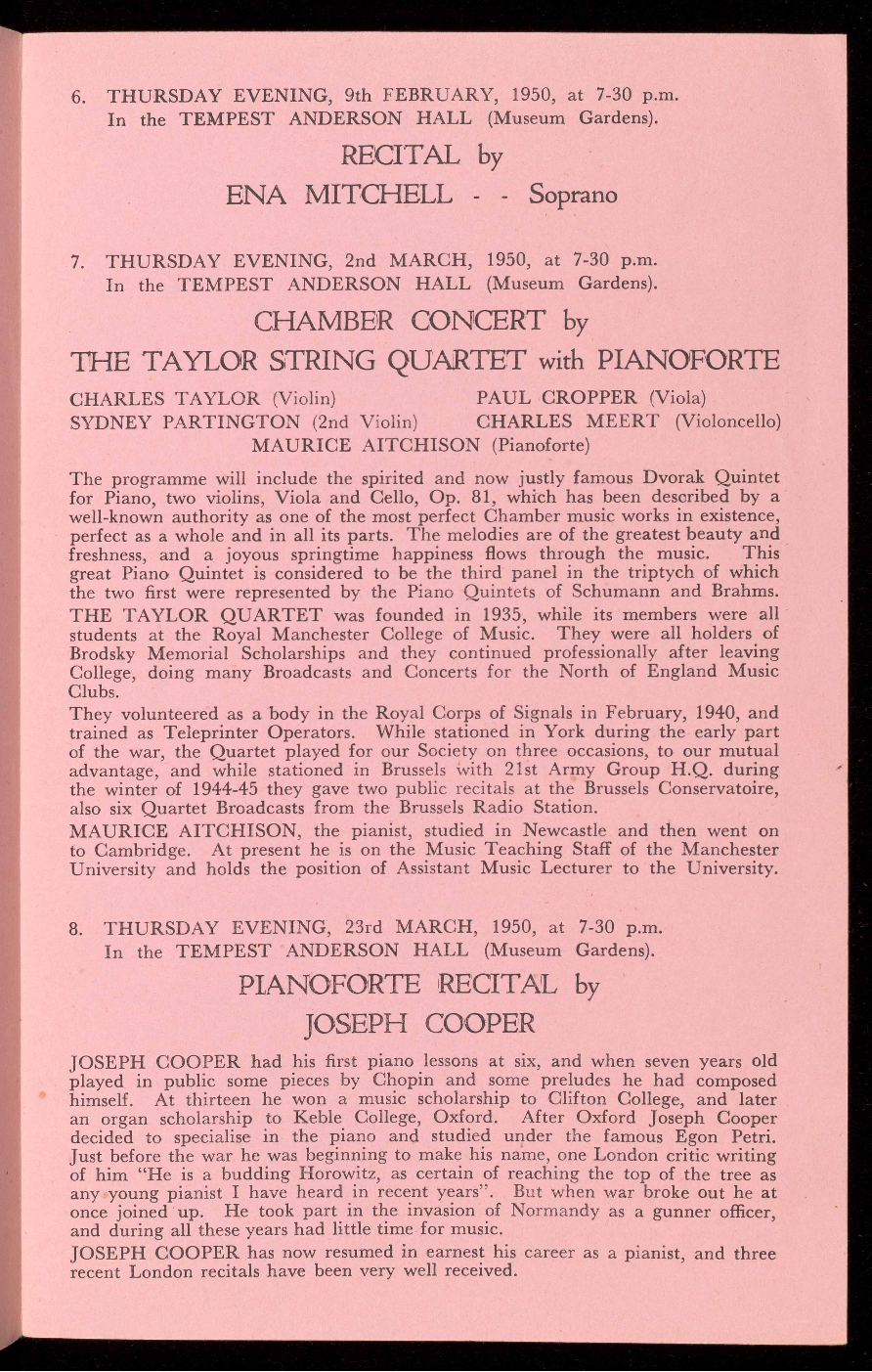 of the war, the Quartet played for our Society on three occasions, to our mutual