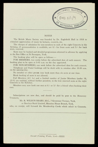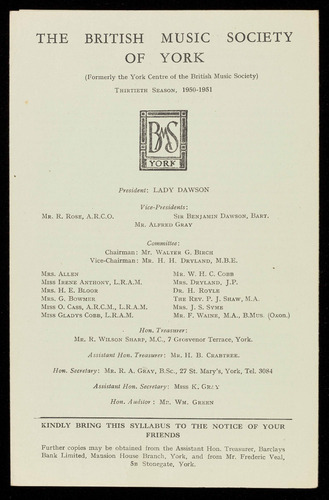 (Formerly the York Centre of the British Music Society)