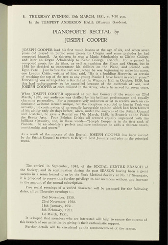 When JOSEPH COOPER appeared at our last Concert of the season on 23rd