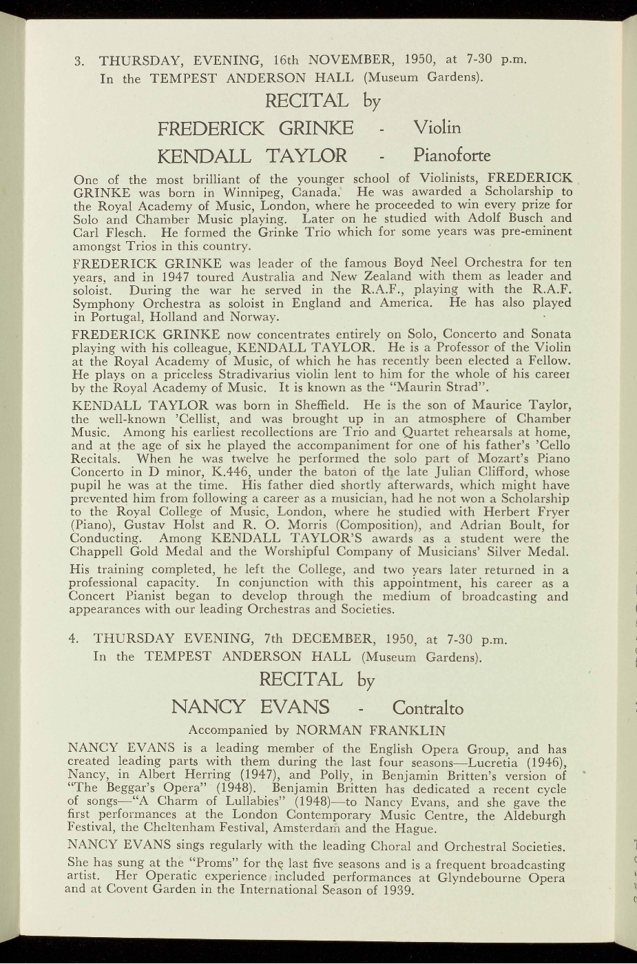 been at the Promenade Concerts and war-time National Gallery Concerts. Last