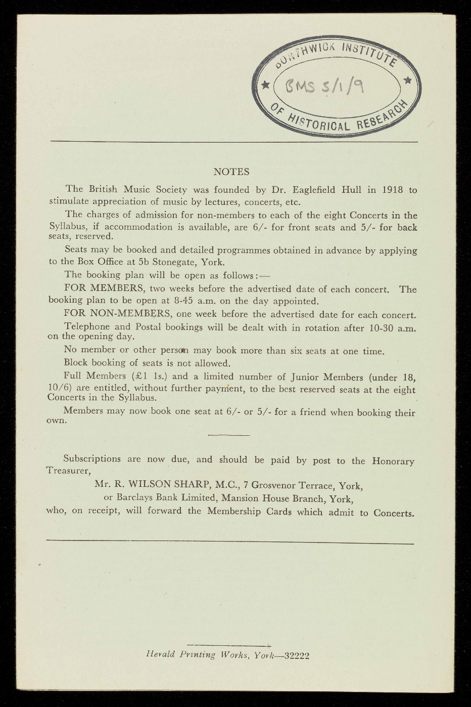 who, on receipt, will forward the Membership Cards which admit to Concerts.
