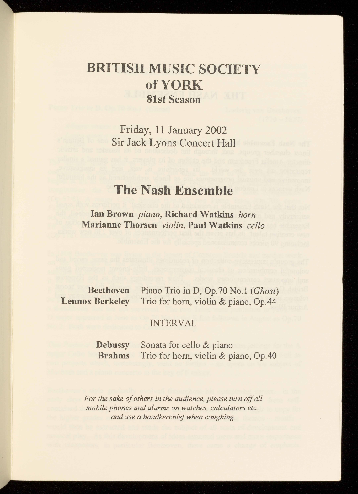 The Nash Ensemble has built up a remarkable reputation as one of Britain's