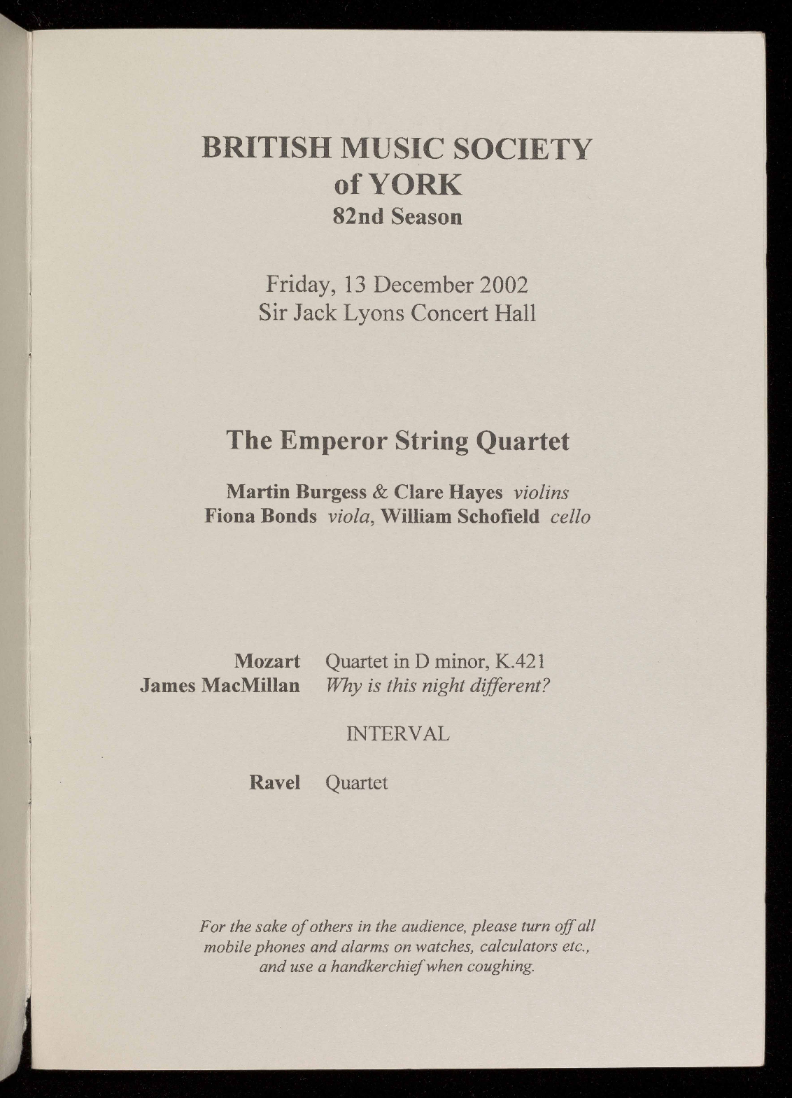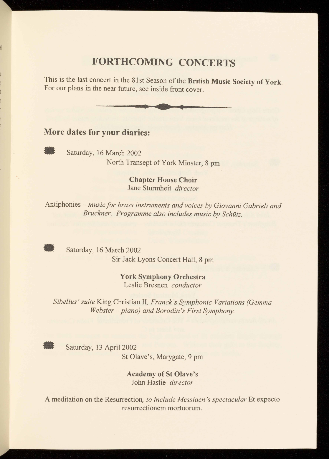 Society and an updated list of forthcoming concerts. If you haven't found it