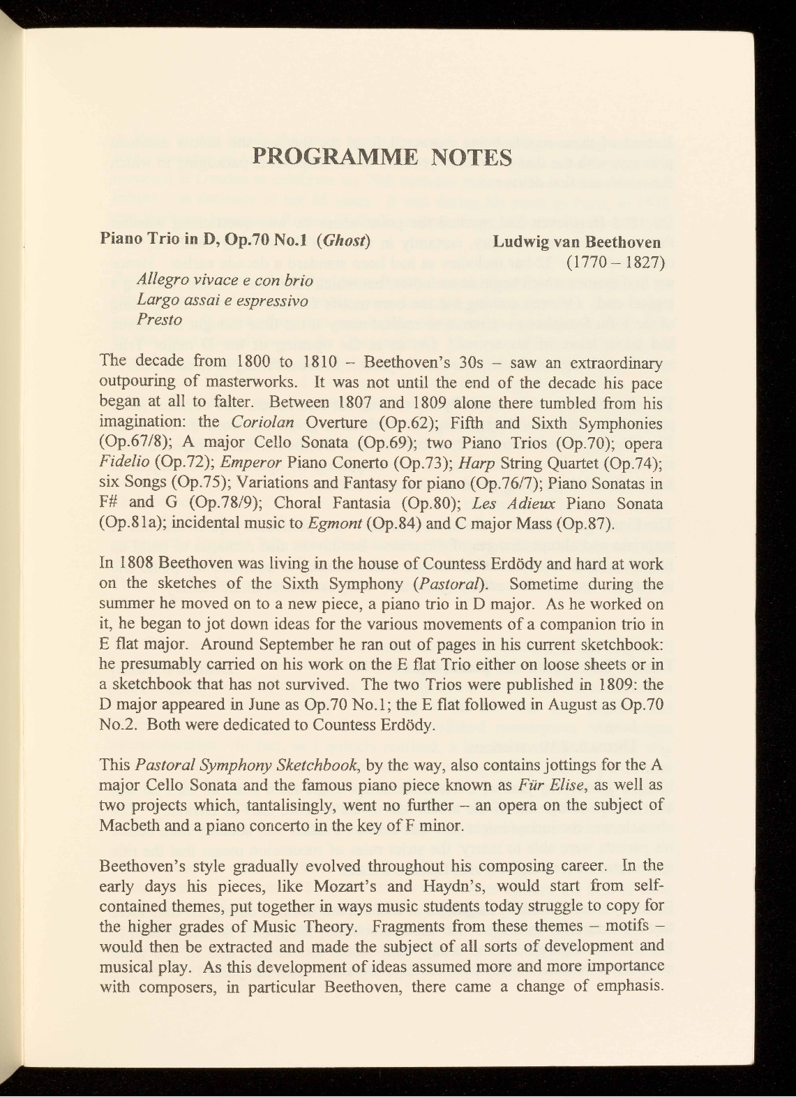 Piano Trio in D, Op.70 No.1 (Ghost)