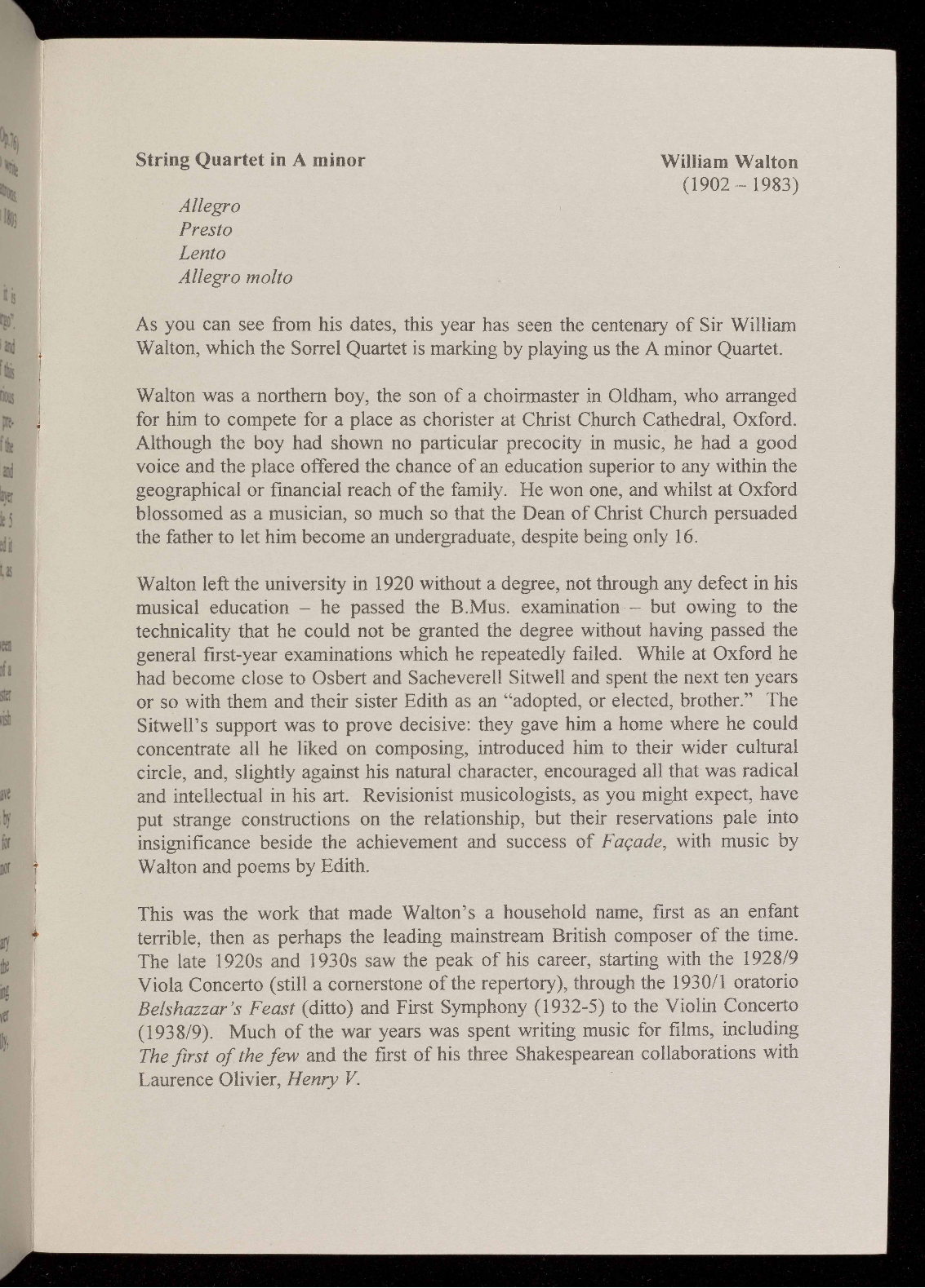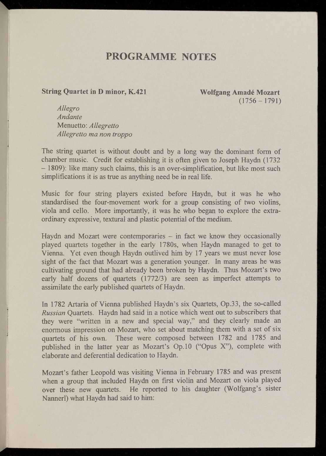 especially in these earlier years. Both quartets are cyclic in their structure - that