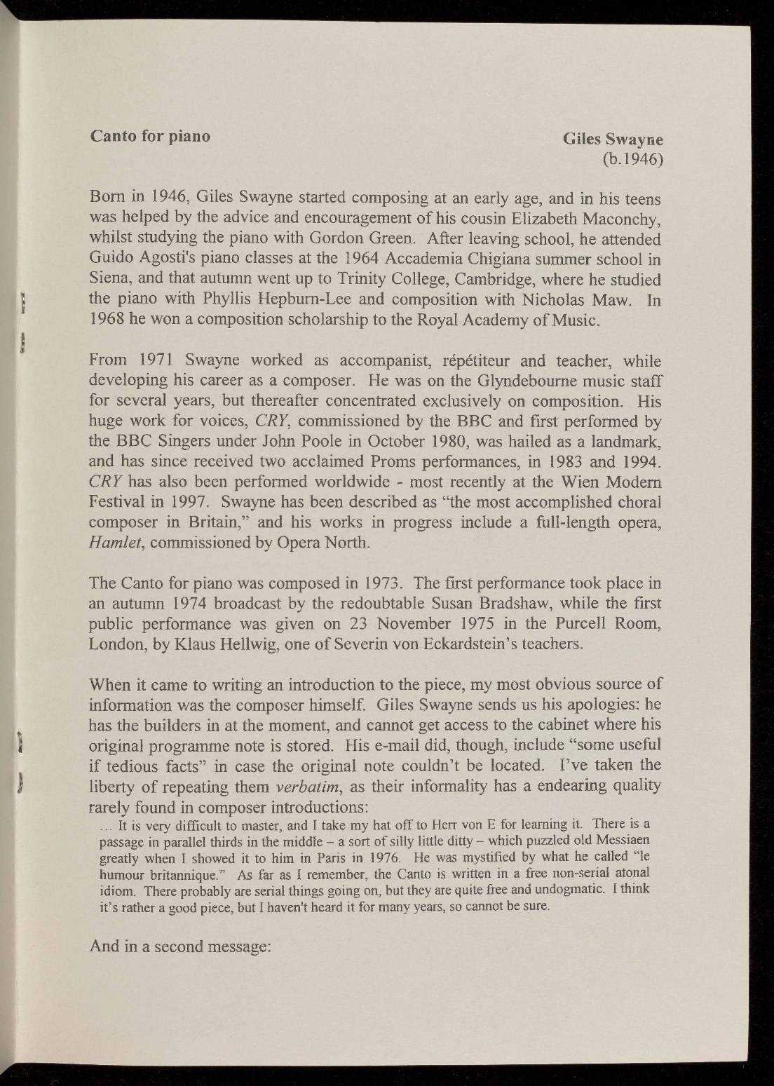 releases being chamber and vocal works by Peter Warlock, Robin Holloway and