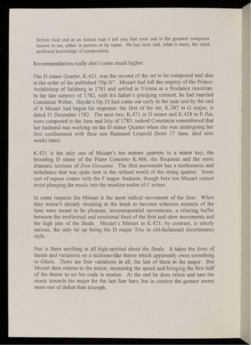 sensitivity and musicality works from Mozart to the avant garde. Indeed, the