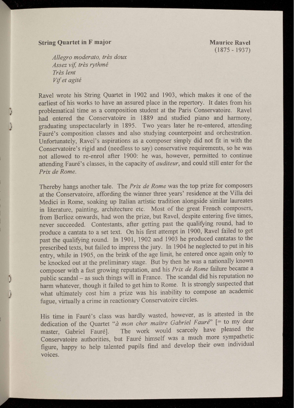 when you haven't, to your knowledge, ever heard the Ravel String Quartet, you