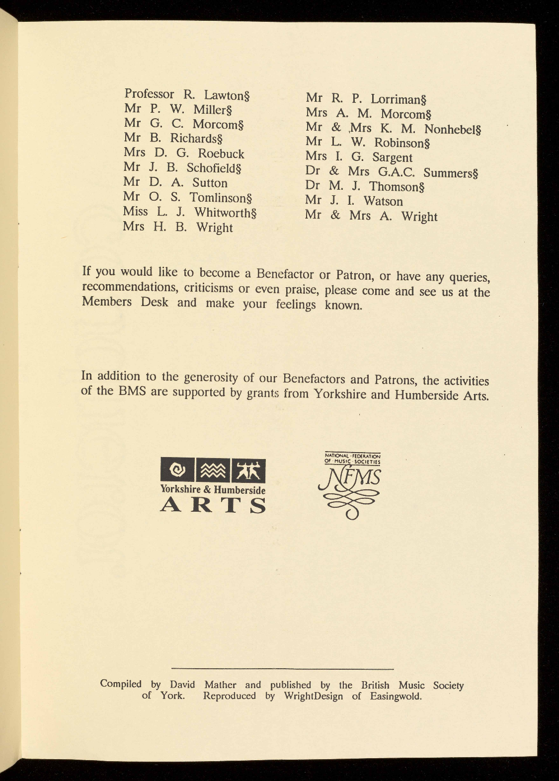 Dr & Mrs G.A.C. Summers§ Mr D. A. Sutton