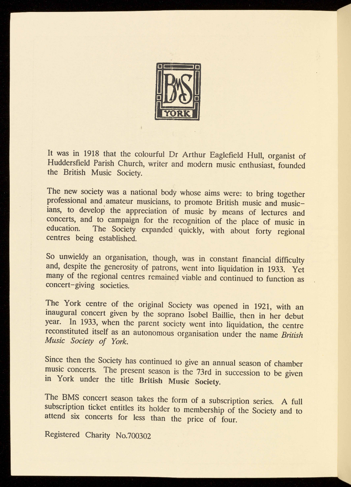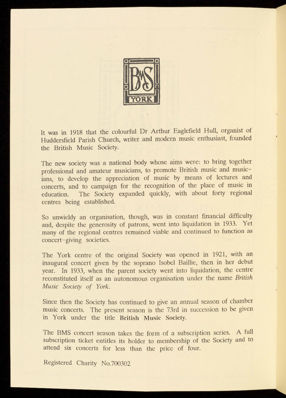 inaugural concert given by the soprano Isobel Baillie, then in her debut