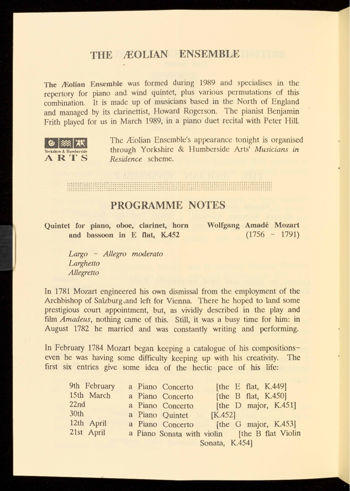 made up of oboe, clarinet and bassoon. The five Pieces are typical of