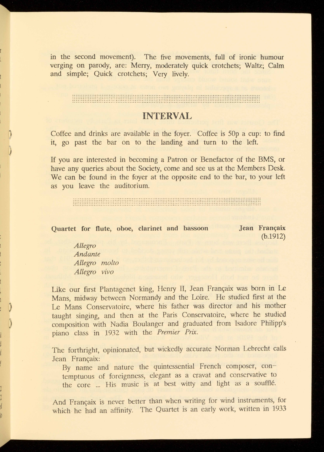 The Sextuor pour piano, flûte, hautbois, clarinette, basson et cor is a