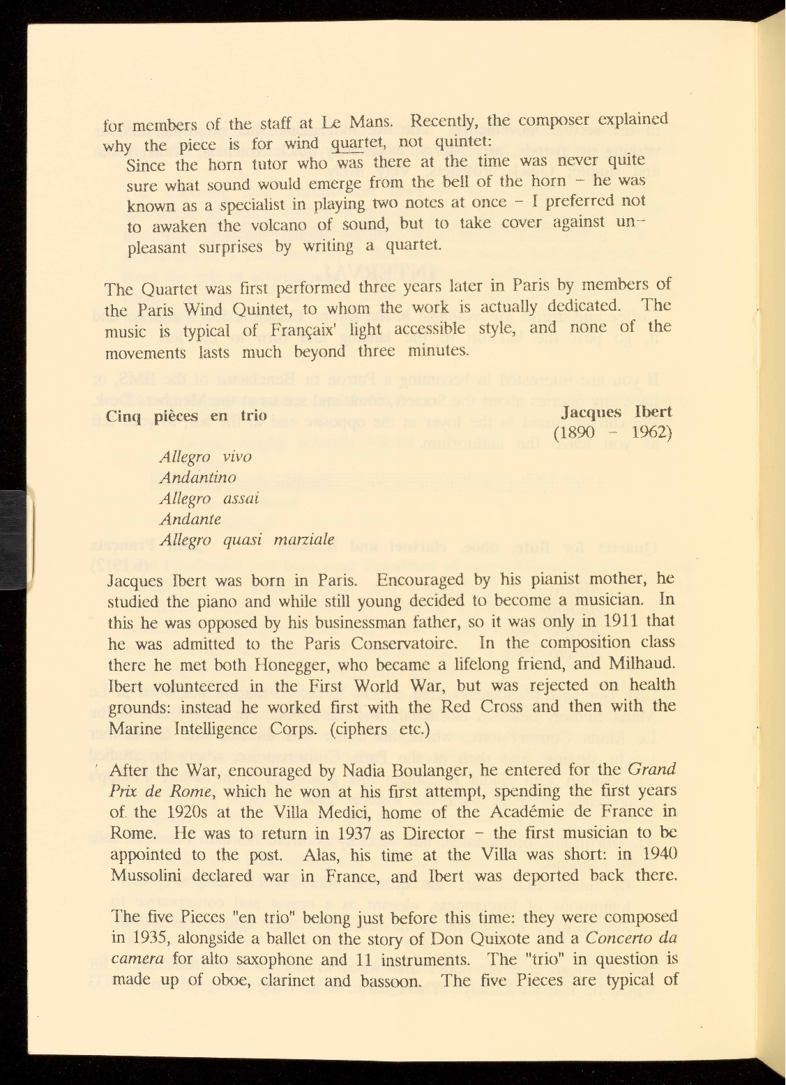 Ibert's light, but sophisticated style, sparkling with virtuosity and wit.