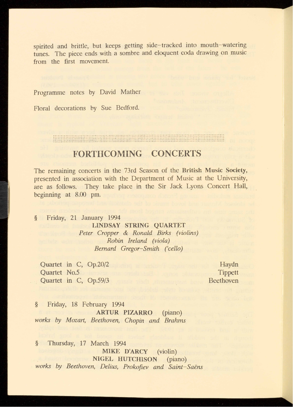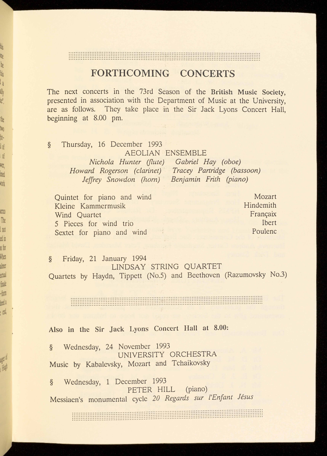 Aldeburgh Festivals and appearances at major centres throughout Western
