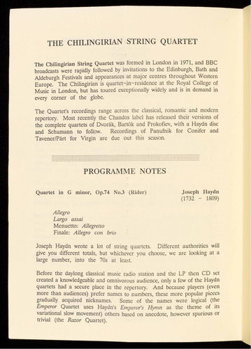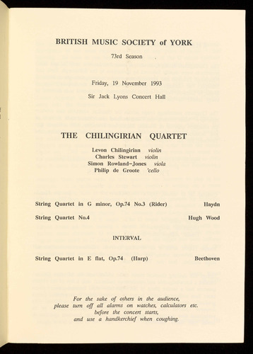 The Chilingirian String Quartet was formed in London in 1971, and BBC