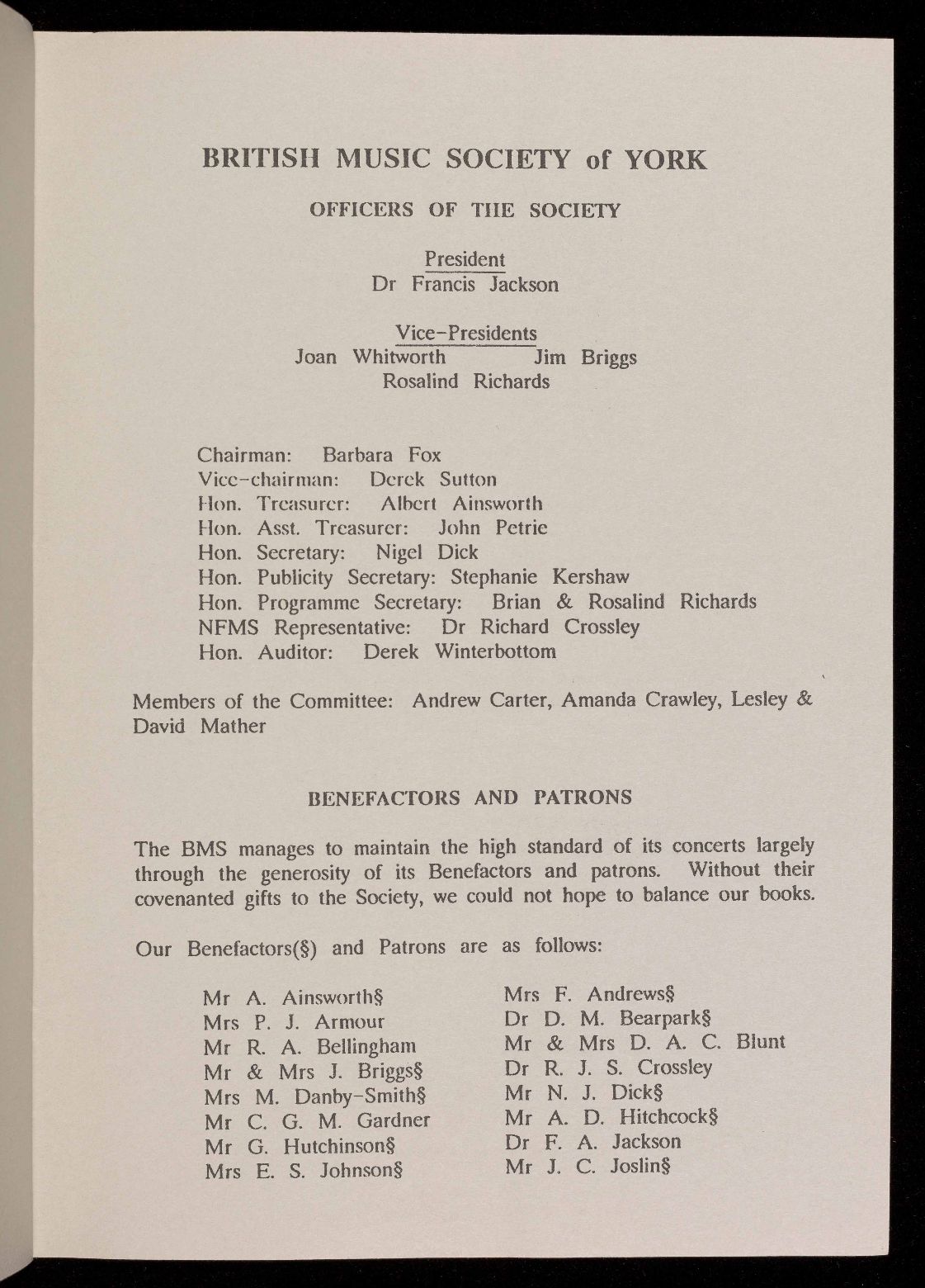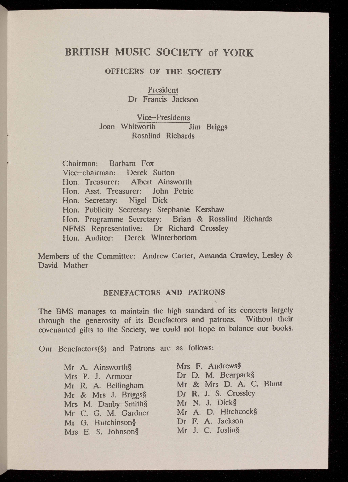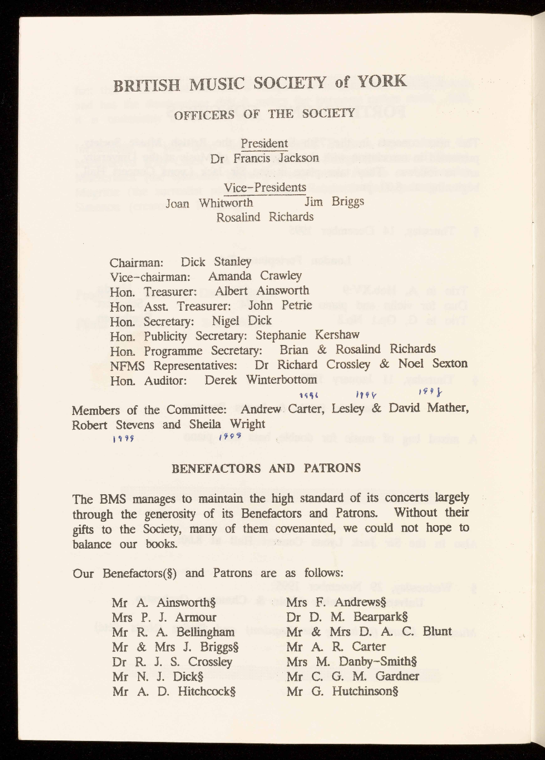 through the generosity of its Benefactors and Patrons.