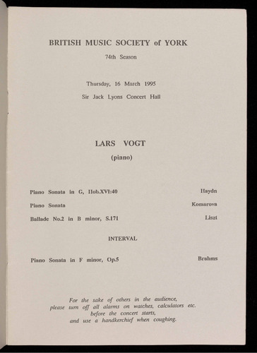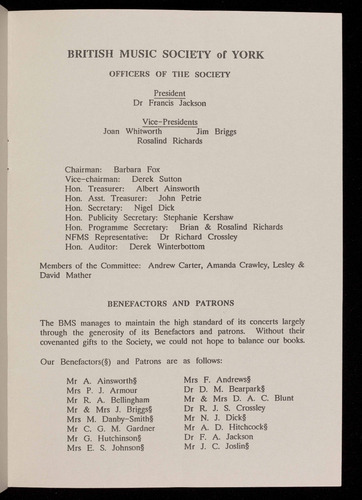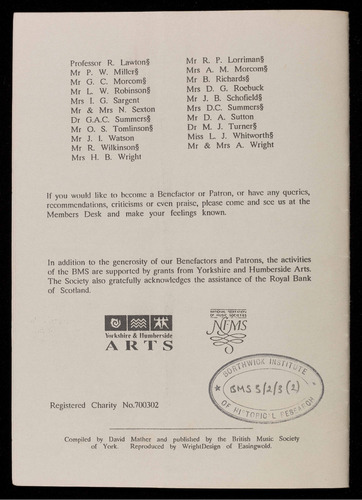 Presented by the British Music Society of York
