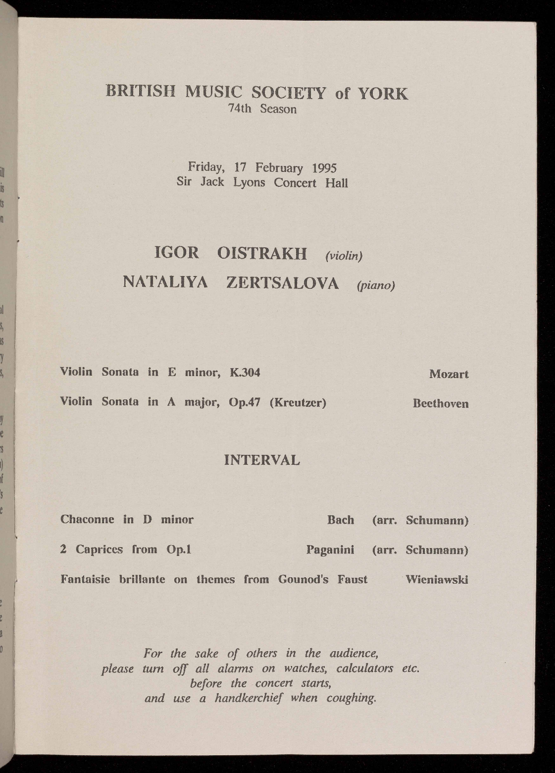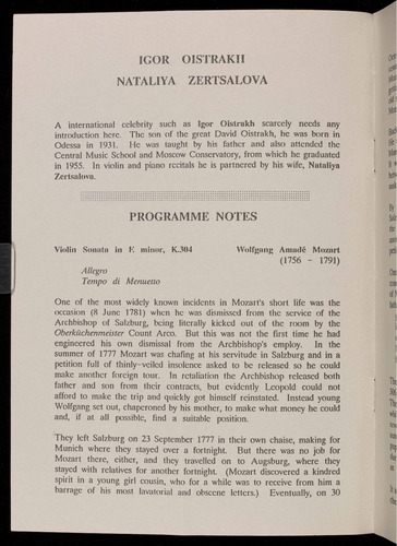will be available for the concert by Igor Oistrakh and Nataliya Zertslova