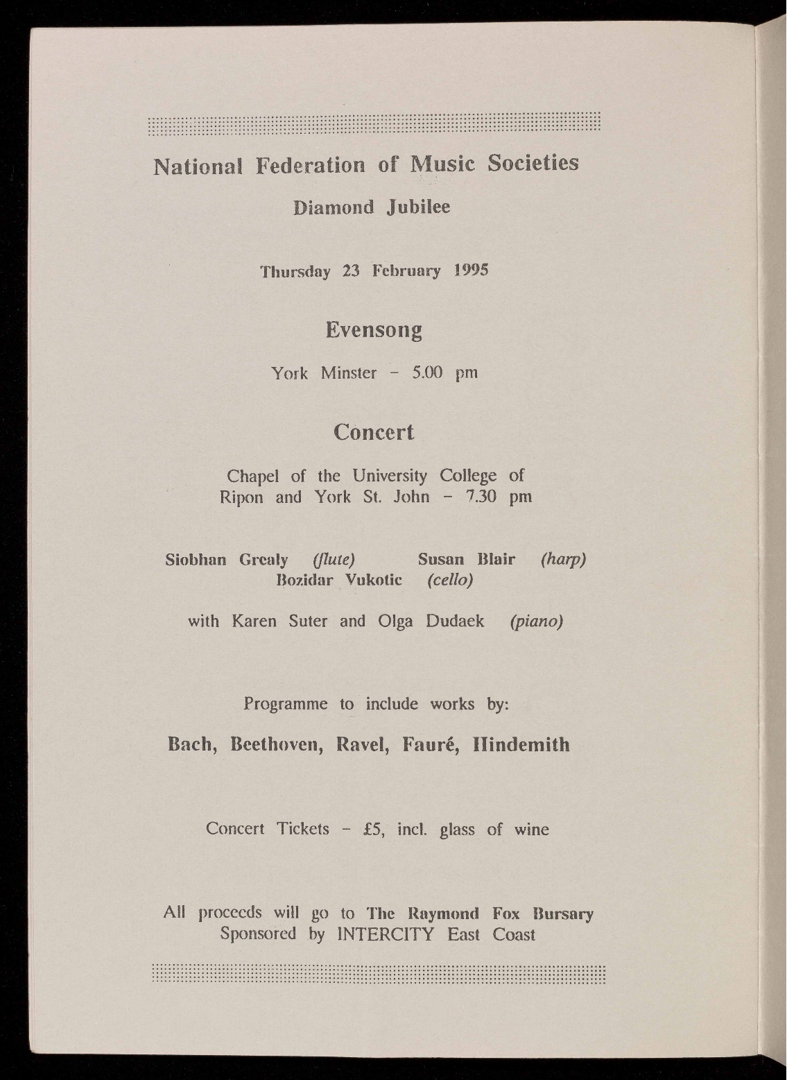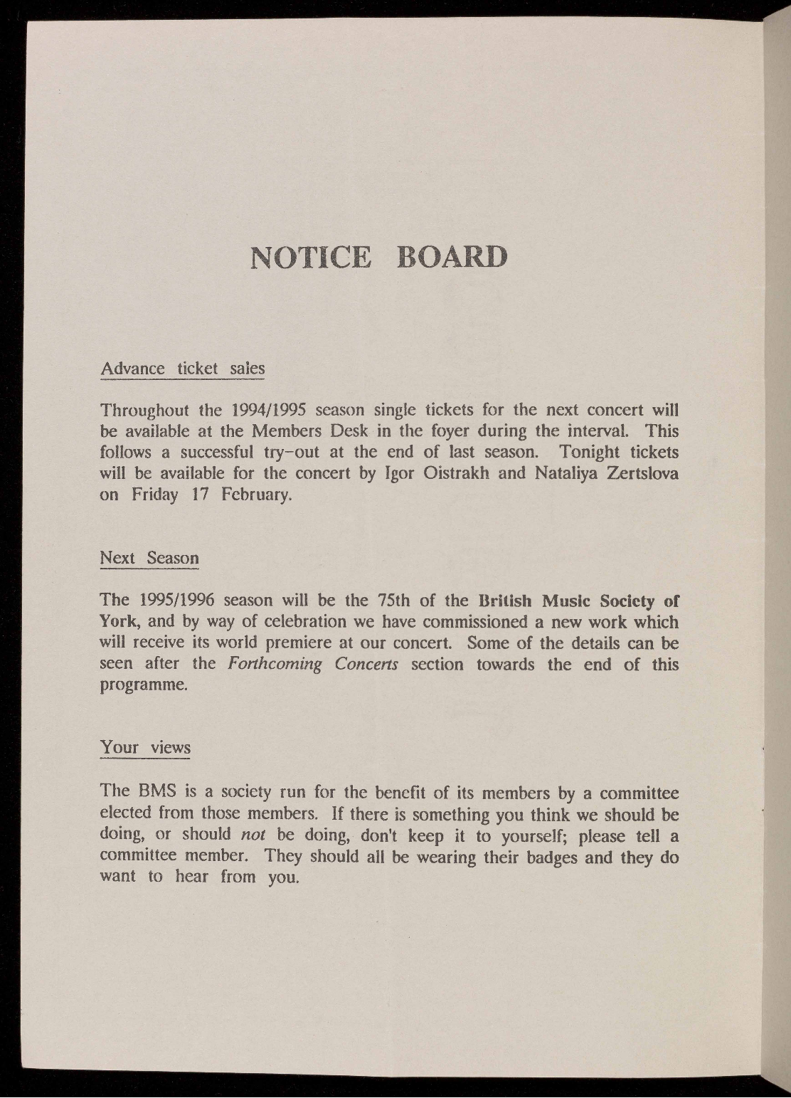 Throughout the 1994/1995 season single tickets for the next concert will