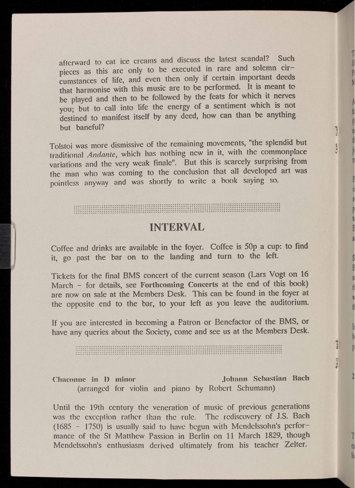 be available at the Members Desk in the foyer during the interval. This