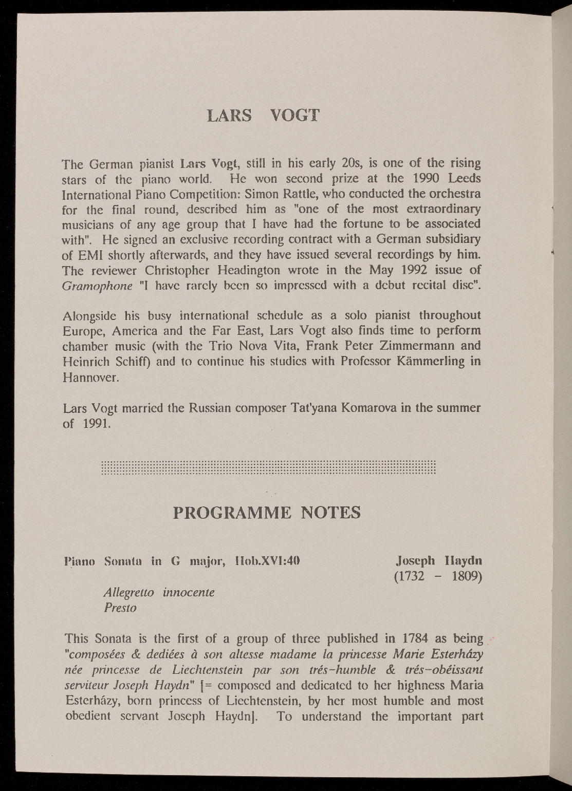 PROGRAMME NOTES