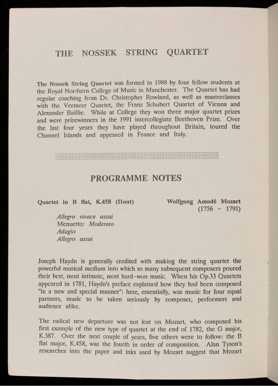 The Nossek String Quartet was formed in 1988 by four fellow students at