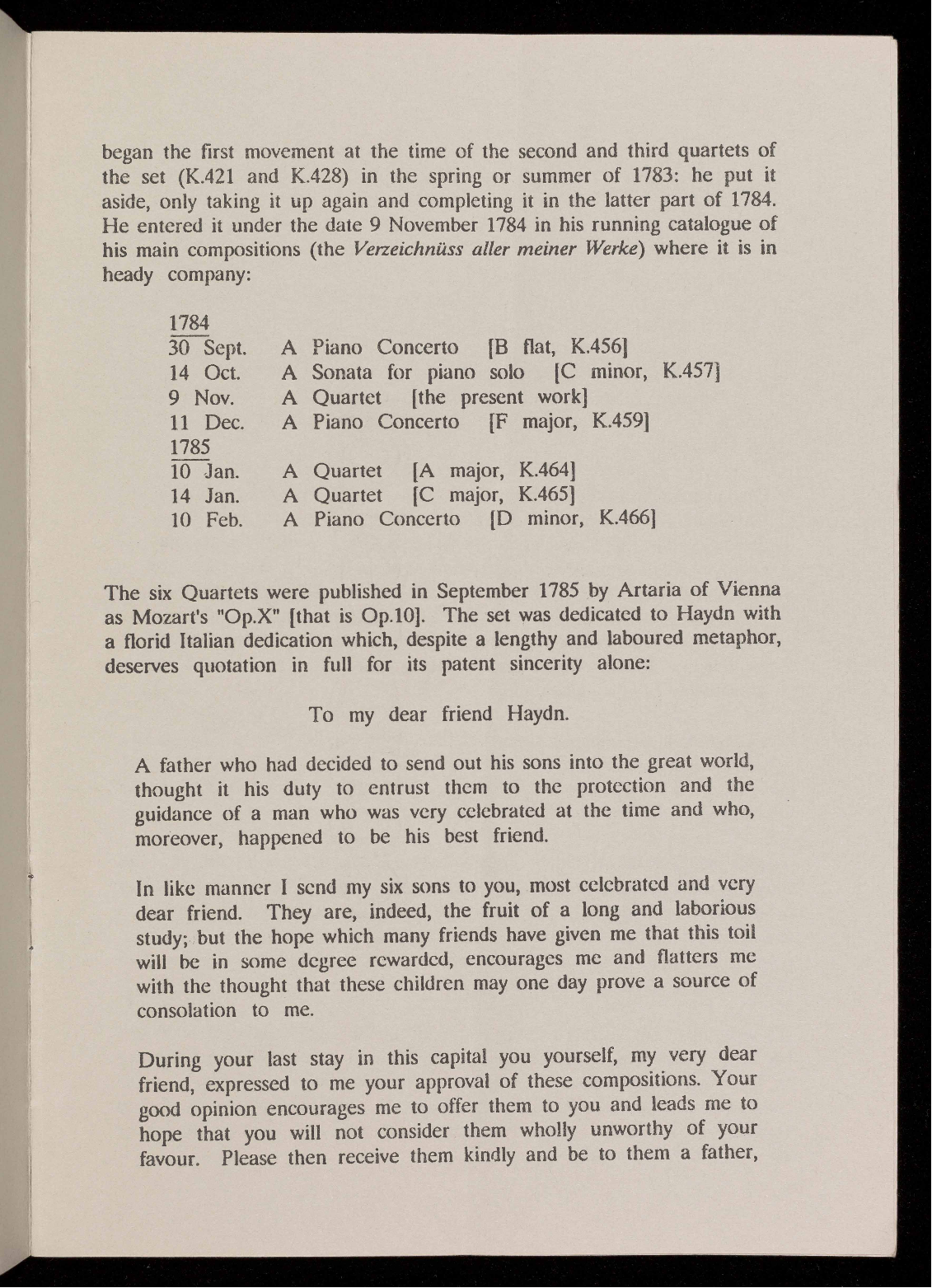 The six Quartets were published in September 1785 by Artaria of Vienna