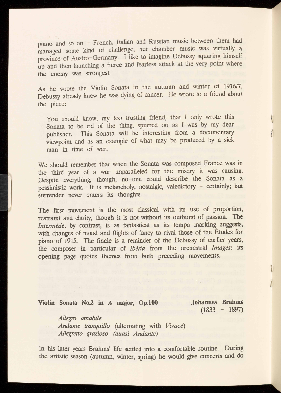 The Violin Sonata was composed in the same year as the Brahms A major,