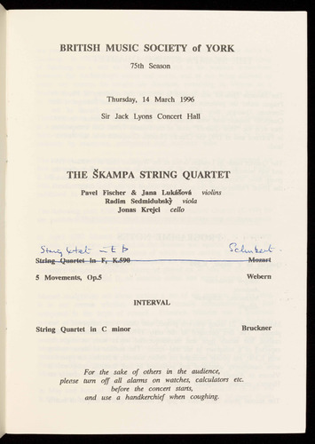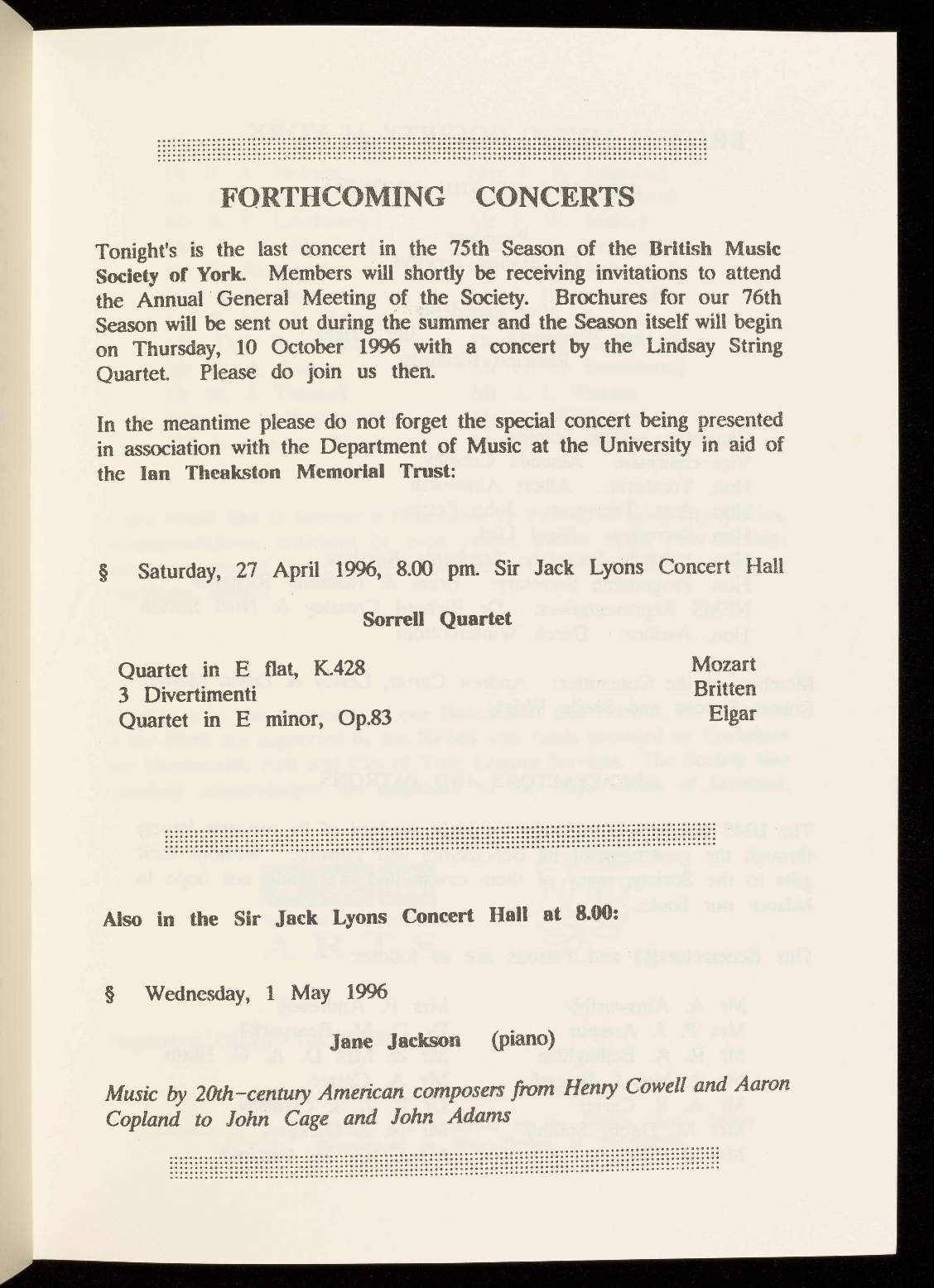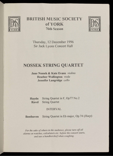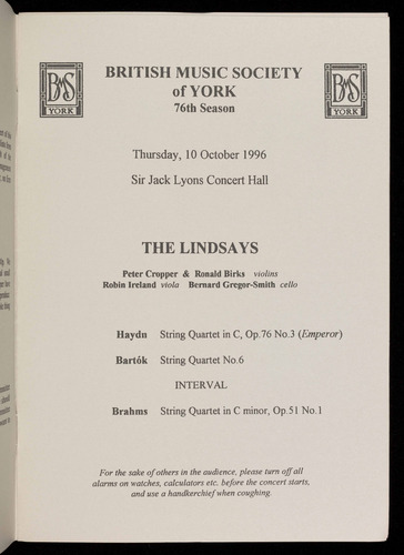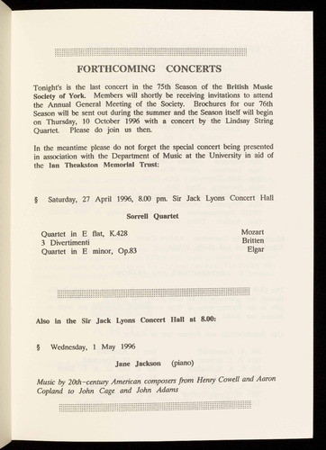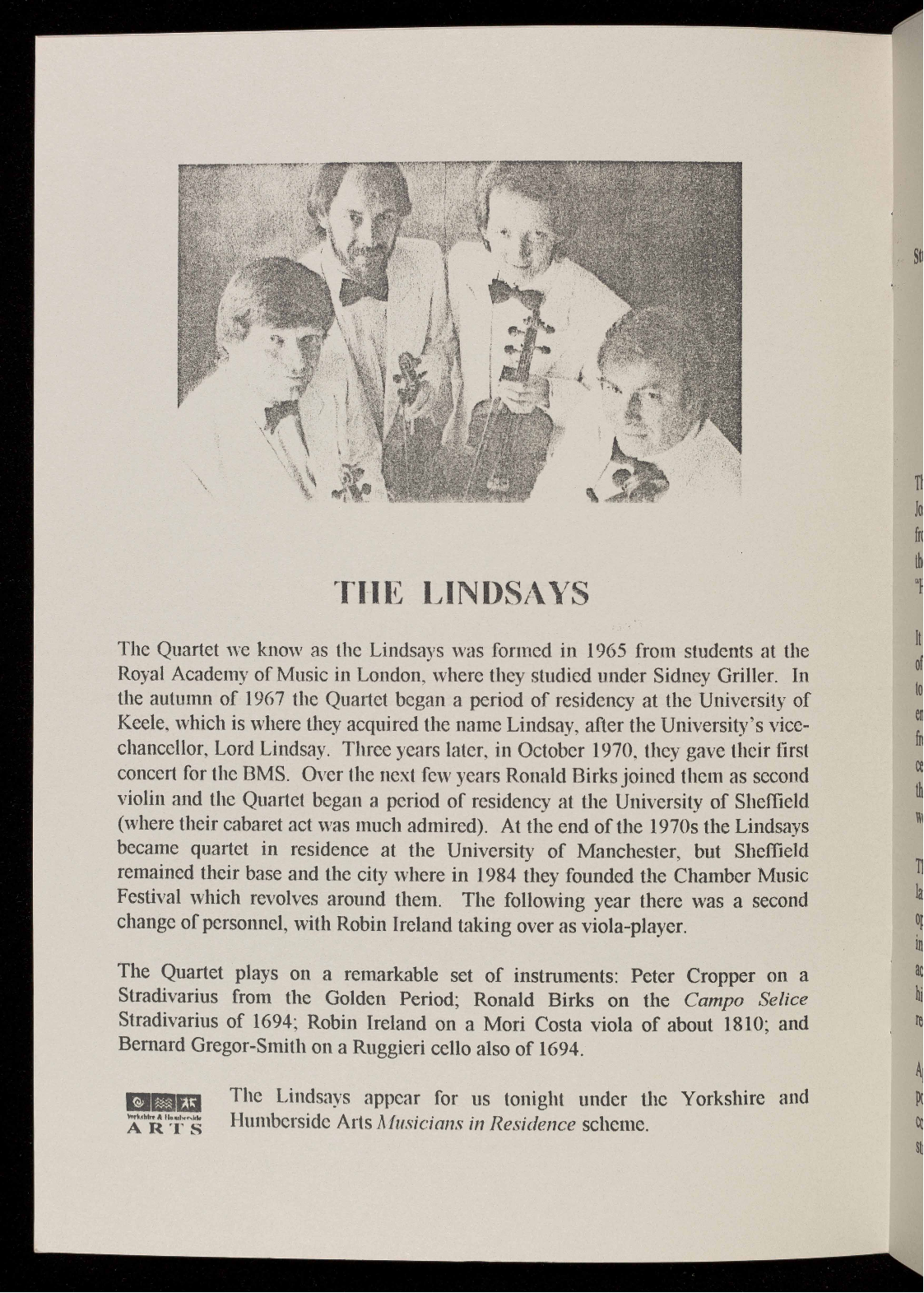Hall by the Sorrell Quartet, late resident at the University. For details of