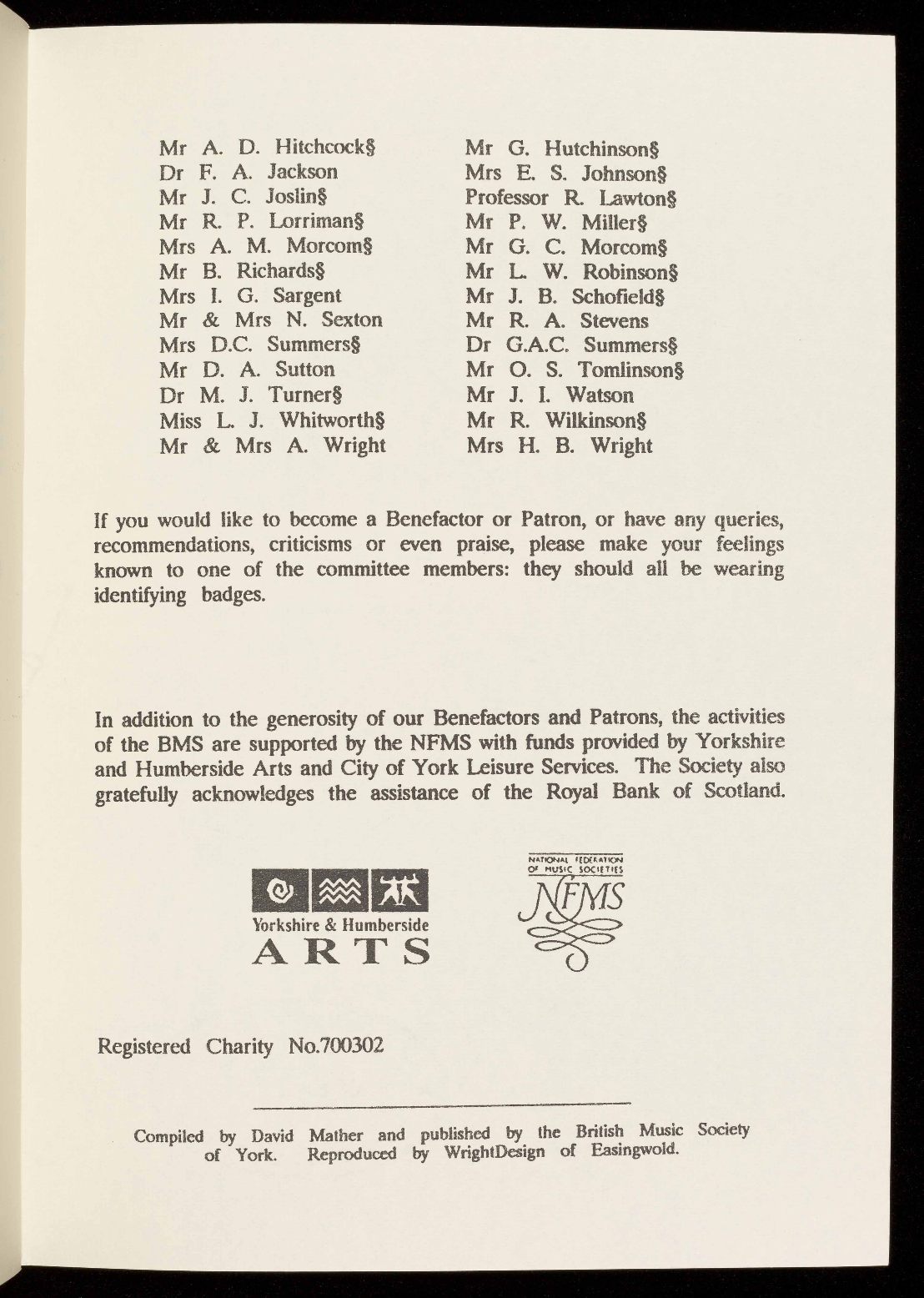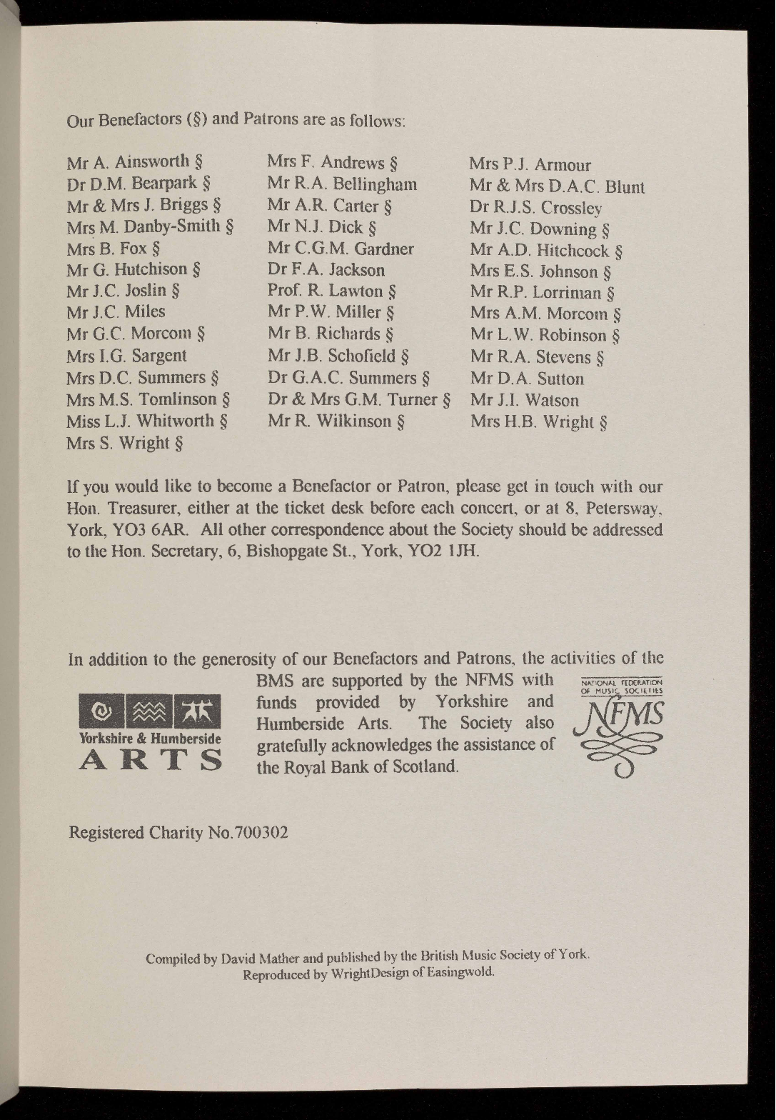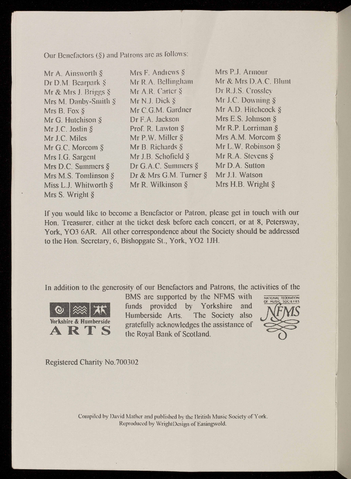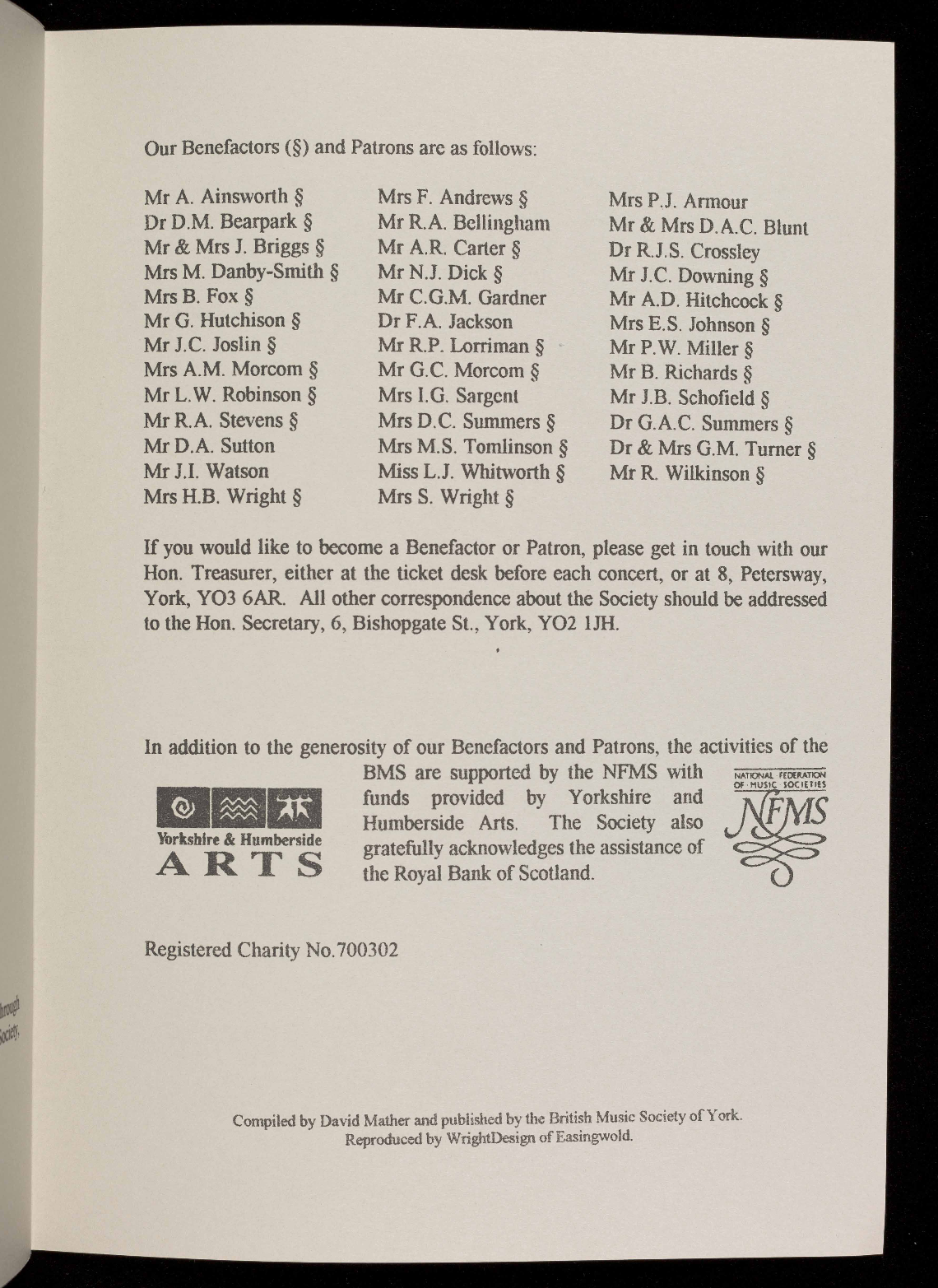If you would like to become a Bencfactor or Patron, please get in touch with our
