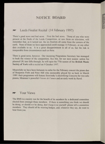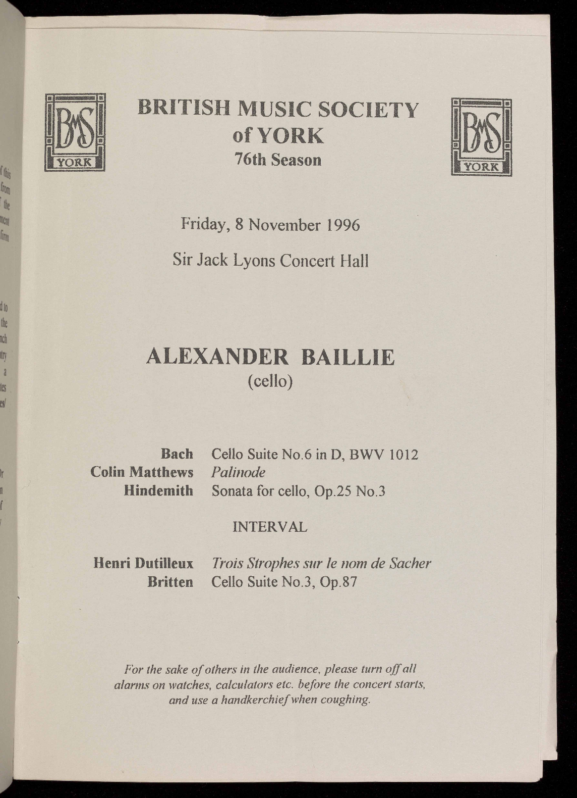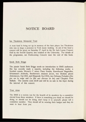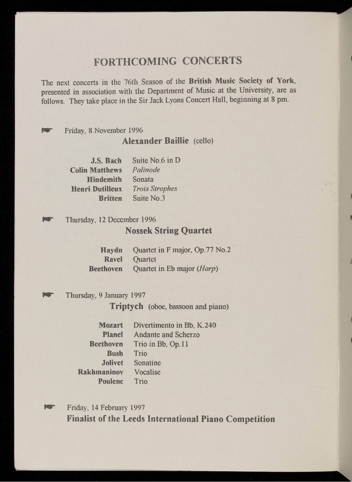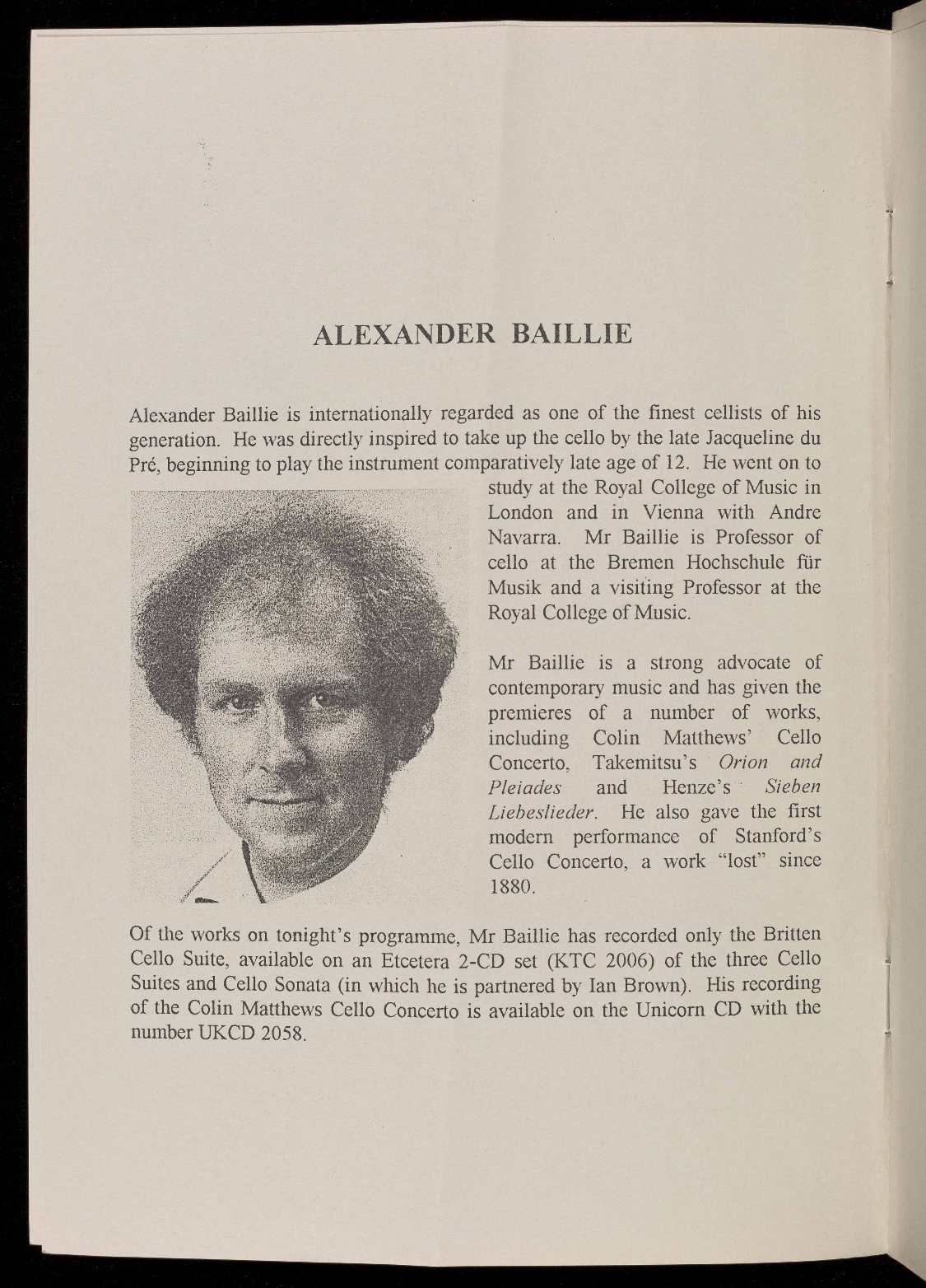 Ballade. The cassette costs £6.00 and will be on sale in the foyer during