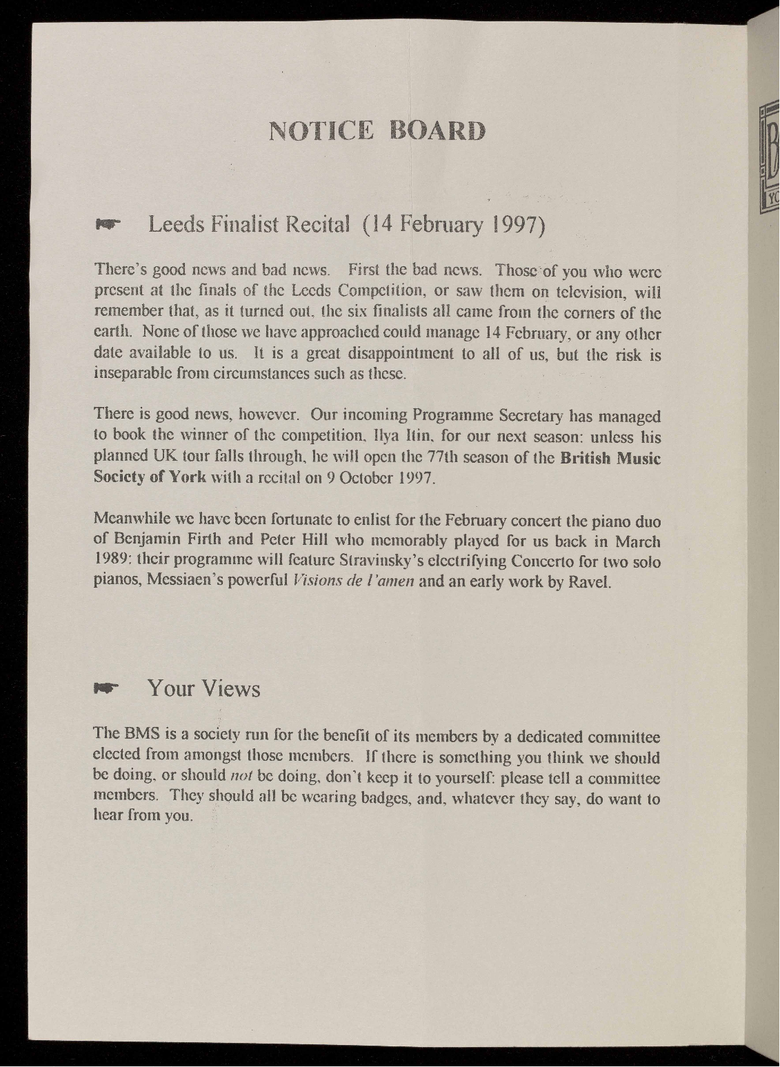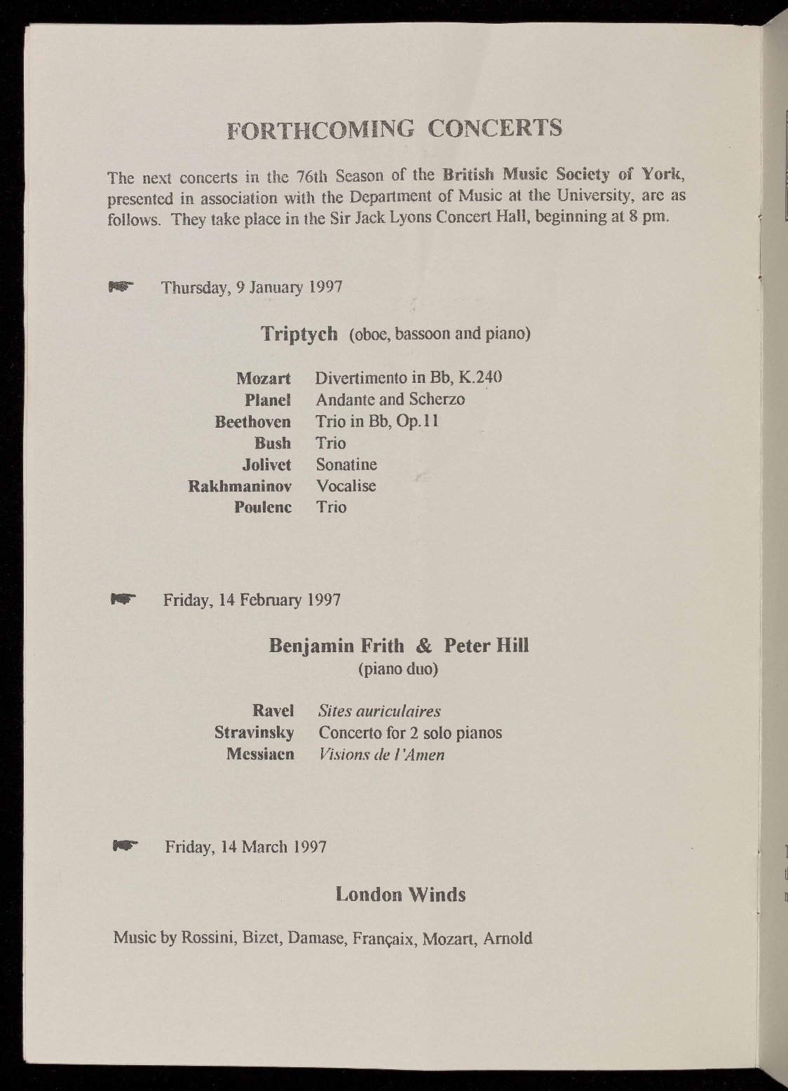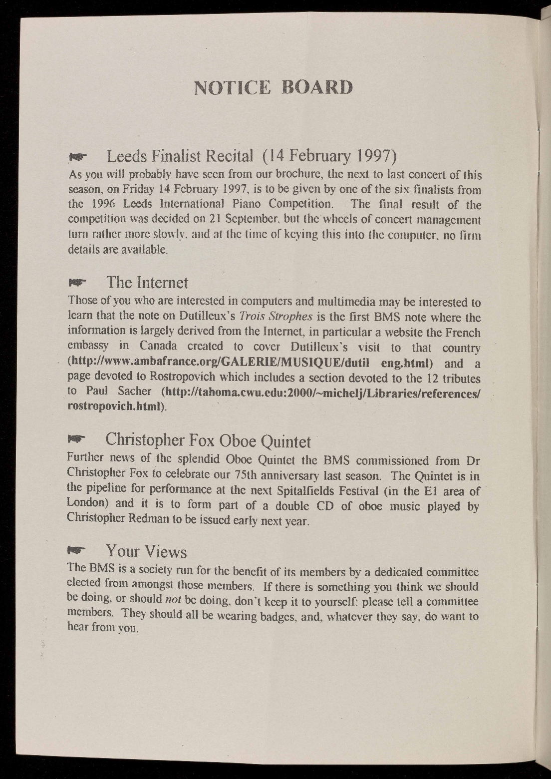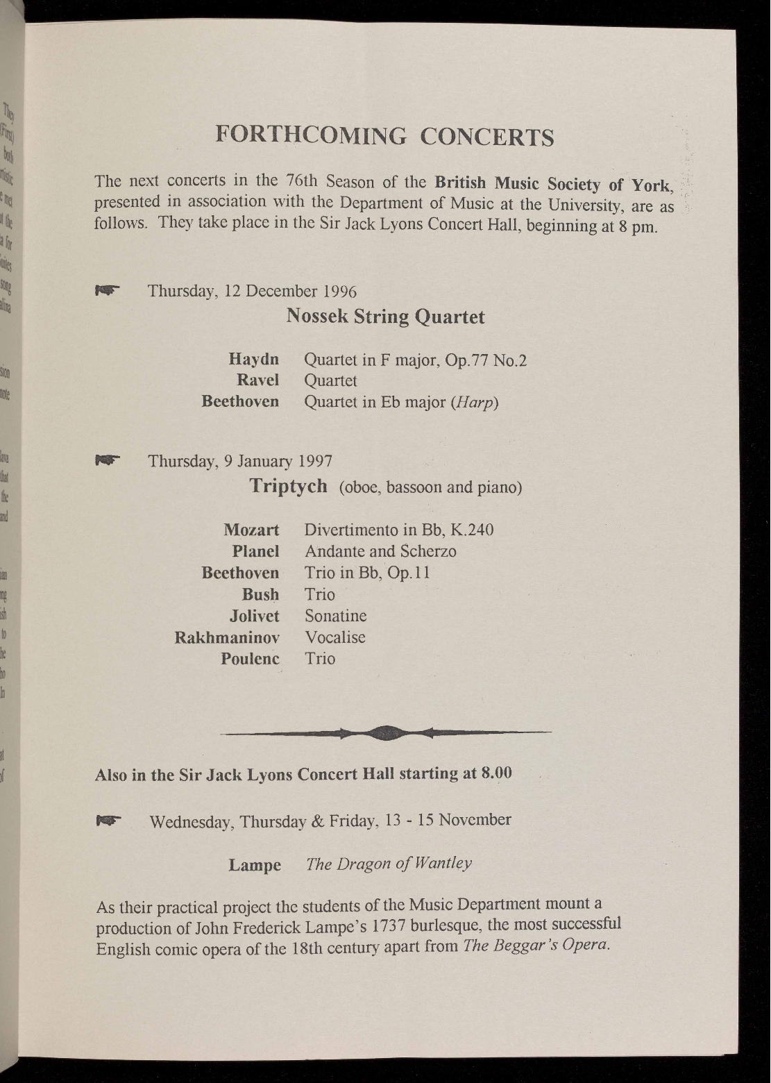 Ballade. The cassette costs £6.00 and will be on sale in the foyer during