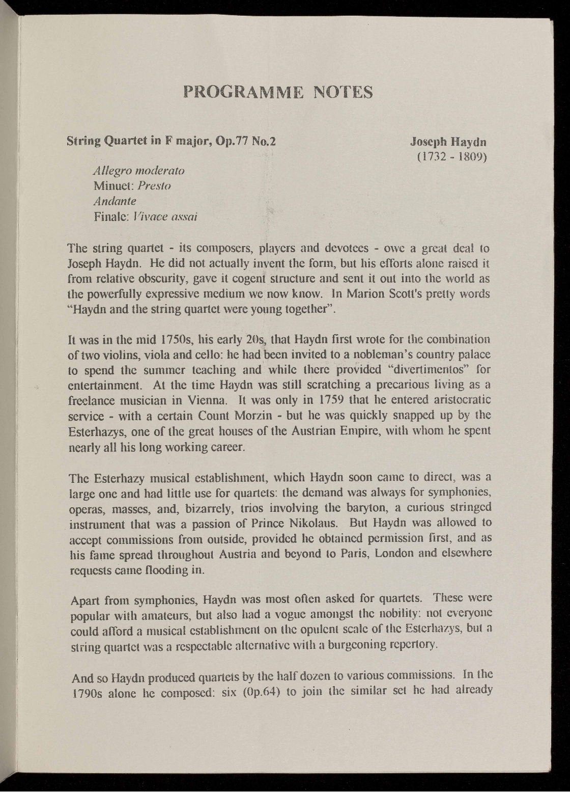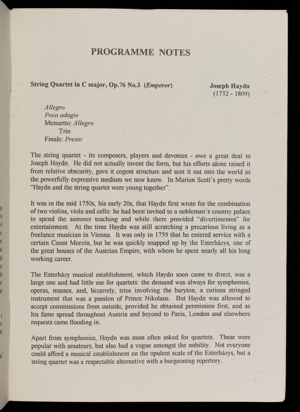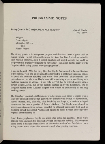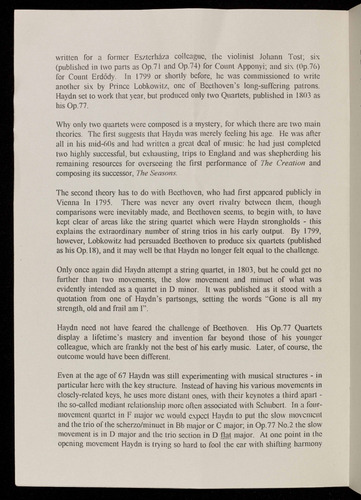 Haydn's recently-composed Quartets Opp.17 and 20.