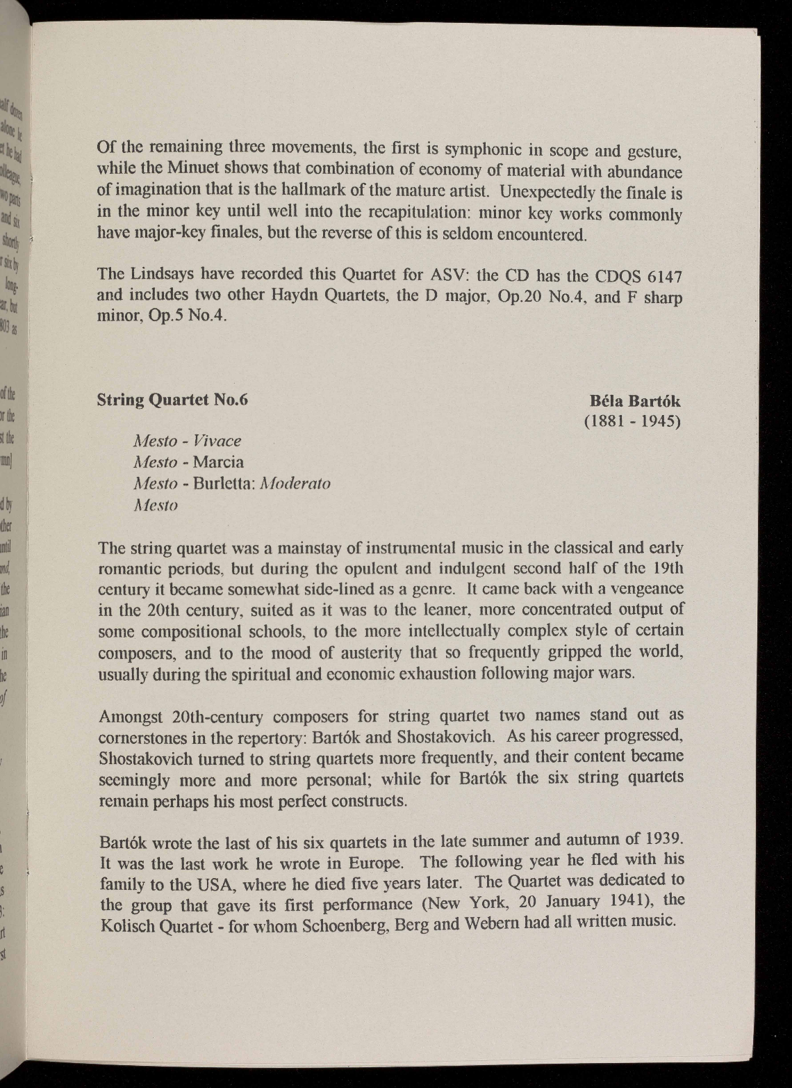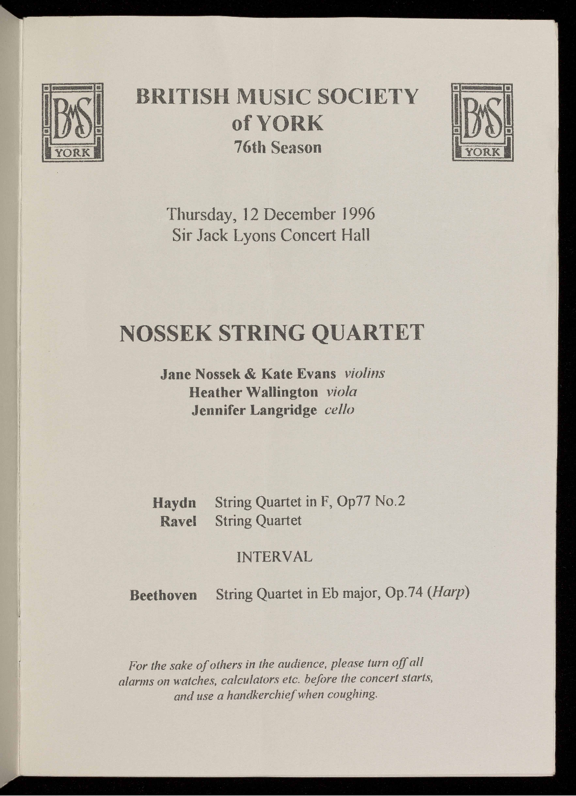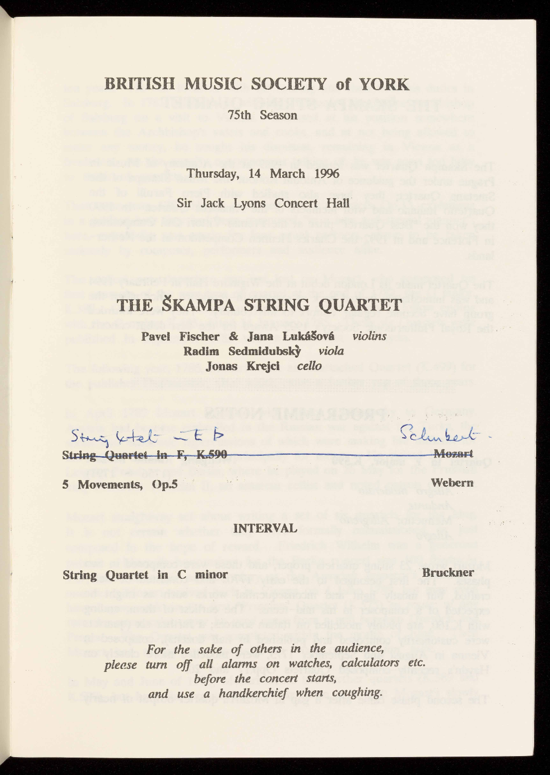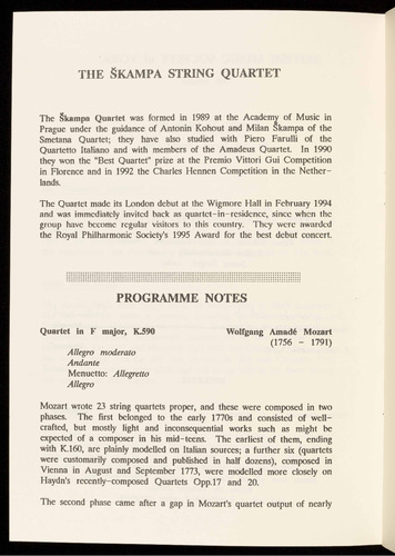 The Quartet made its London debut at the Wigmore Hall in February 1994