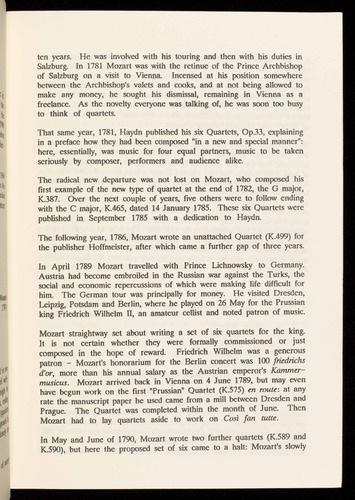 with the C major, K.465, dated 14 January 1785. These six Quartets were