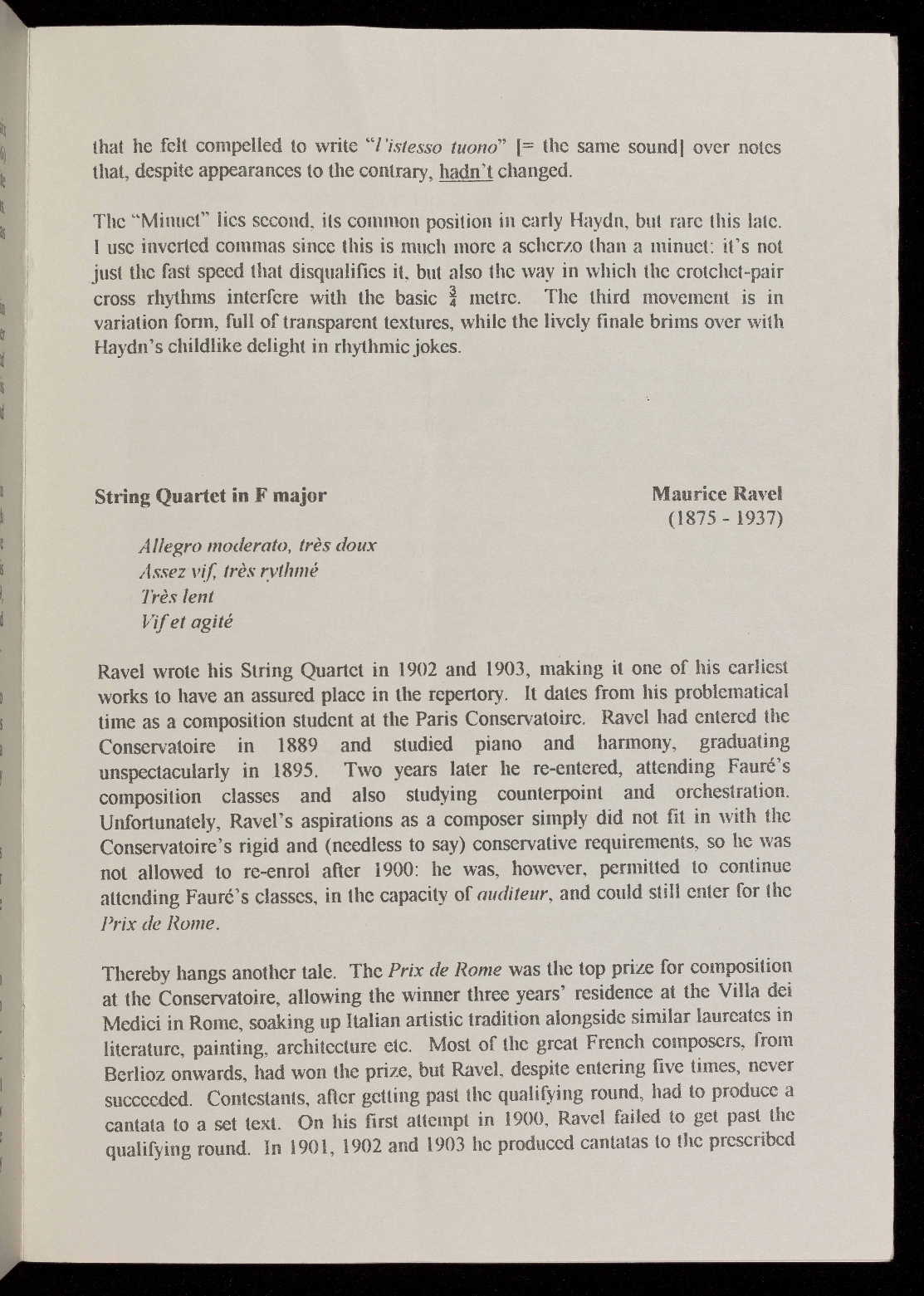 when you haven't, to your knowledge, ever heard the Ravel String Quartet, you